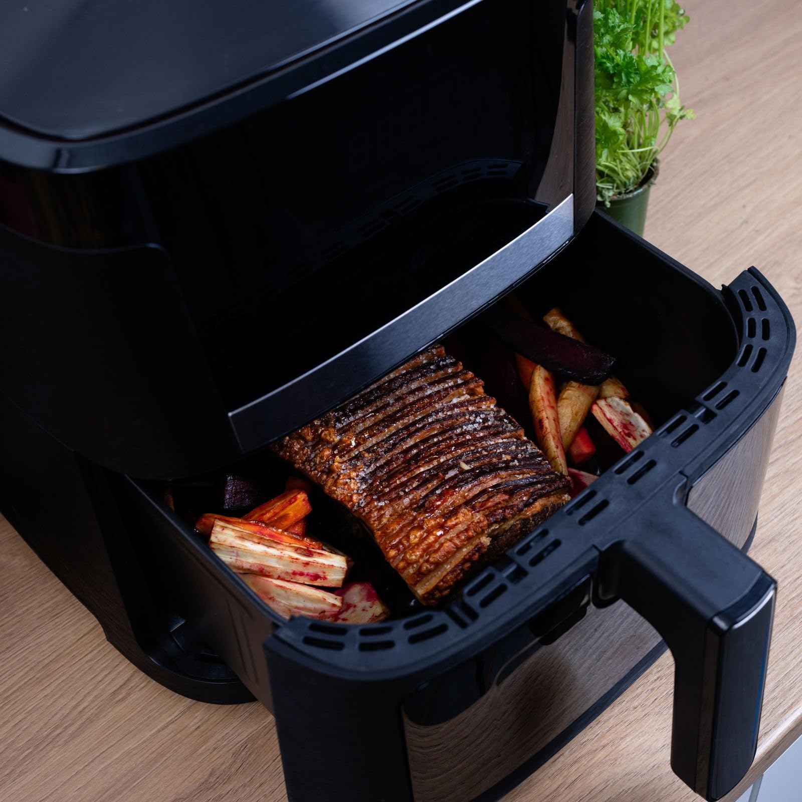 Heißluftfritteuse Sobczyk to nie tylko funkcjonalność, ale także estetyka. Urządzenie wyróżnia się nowoczesnym i eleganckim designem, który wpasuje się w każdą kuchnię. Intuicyjny interfejs z wyświetlaczem LED sprawia, że obsługa jest niezwykle prosta. Wszystkie programy są jasno przedstawione, dzięki czemu nawet osoby, które nigdy wcześniej nie korzystały z heißluftfritteuse, szybko się z nią oswoją.