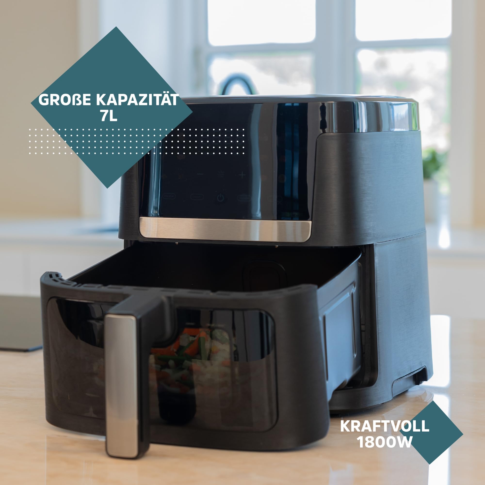 Jednym z najważniejszych atutów Heißluftfritteuse Sobczyk jest jej imponująca pojemność 7L. To sprawia, że jest ona idealna do gotowania dla większej grupy osób. Niezależnie od tego, czy przygotowujesz pyszne frytki na rodzinny obiad, czy chrupiące skrzydełka na przyjęcie ze znajomymi, ta heißluftfritteuse z pewnością zaspokoi Twoje potrzeby. Dzięki dużej komorze gotowania możesz przygotować jedzenie dla wszystkich naraz, co znacznie skraca czas oczekiwania.