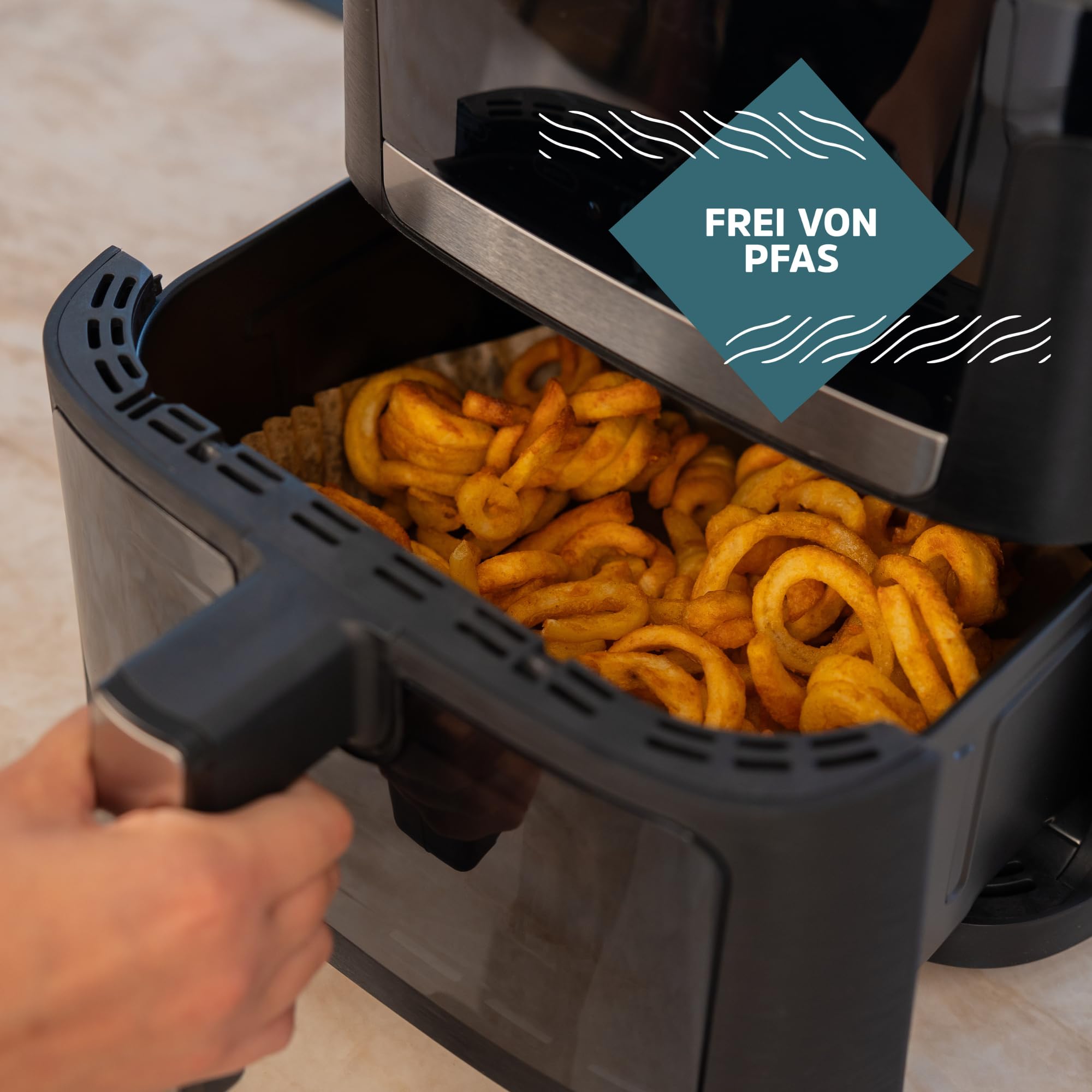 Zdrowie naszej rodziny jest najważniejsze, dlatego Heißluftfritteuse Sobczyk została zaprojektowana z myślą o bezpieczeństwie. Urządzenie jest wolne od substancji PFAS, co oznacza, że możesz gotować bez obaw o szkodliwe składniki. Dzięki tej fritteuse, możesz przygotować swoje ulubione dania w zdrowszy sposób, z minimalną ilością tłuszczu, ciesząc się jednocześnie ich pełnym smakiem.