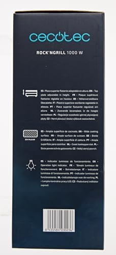 Cecotec Rock’nGrill 1500 Rapid grill elektryczny. Okładzina kamienna RockStone, płyta wierzchnia z regulacją wysokości, pojemnik na tłuszcz, moc 1500 W, obudowa przyjazna dla środowiska (1000 W)