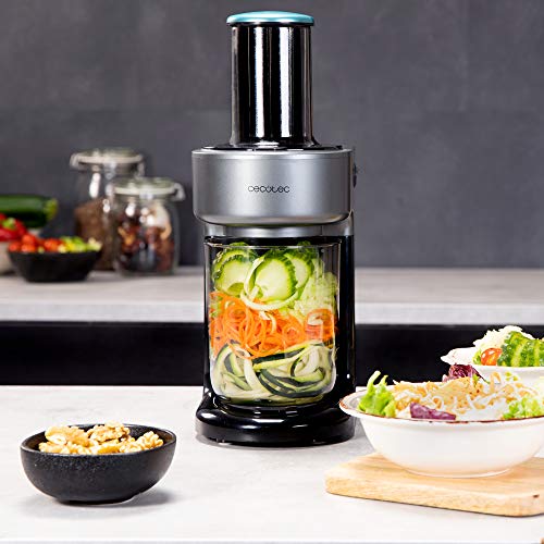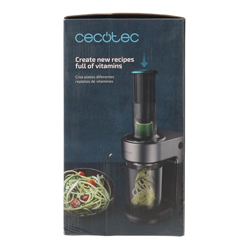 Cecotec Spiralchef 400 Spiralizer to potężne narzędzie kuchenne o mocy 80 W, wyposażone w 4 ostrza ze stali nierdzewnej o różnych rozmiarach do spiralnego cięcia owoców i warzyw. Dzięki szerokiemu kanałowi wlotowemu, ten spiralizer ułatwia tworzenie zdrowych i pysznych dań w kilka minut. Pożegnaj nudne sałatki i przywitaj pięknie spiralizowane potrawy dzięki temu wygodnemu i wszechstronnemu gadżetowi kuchennemu.