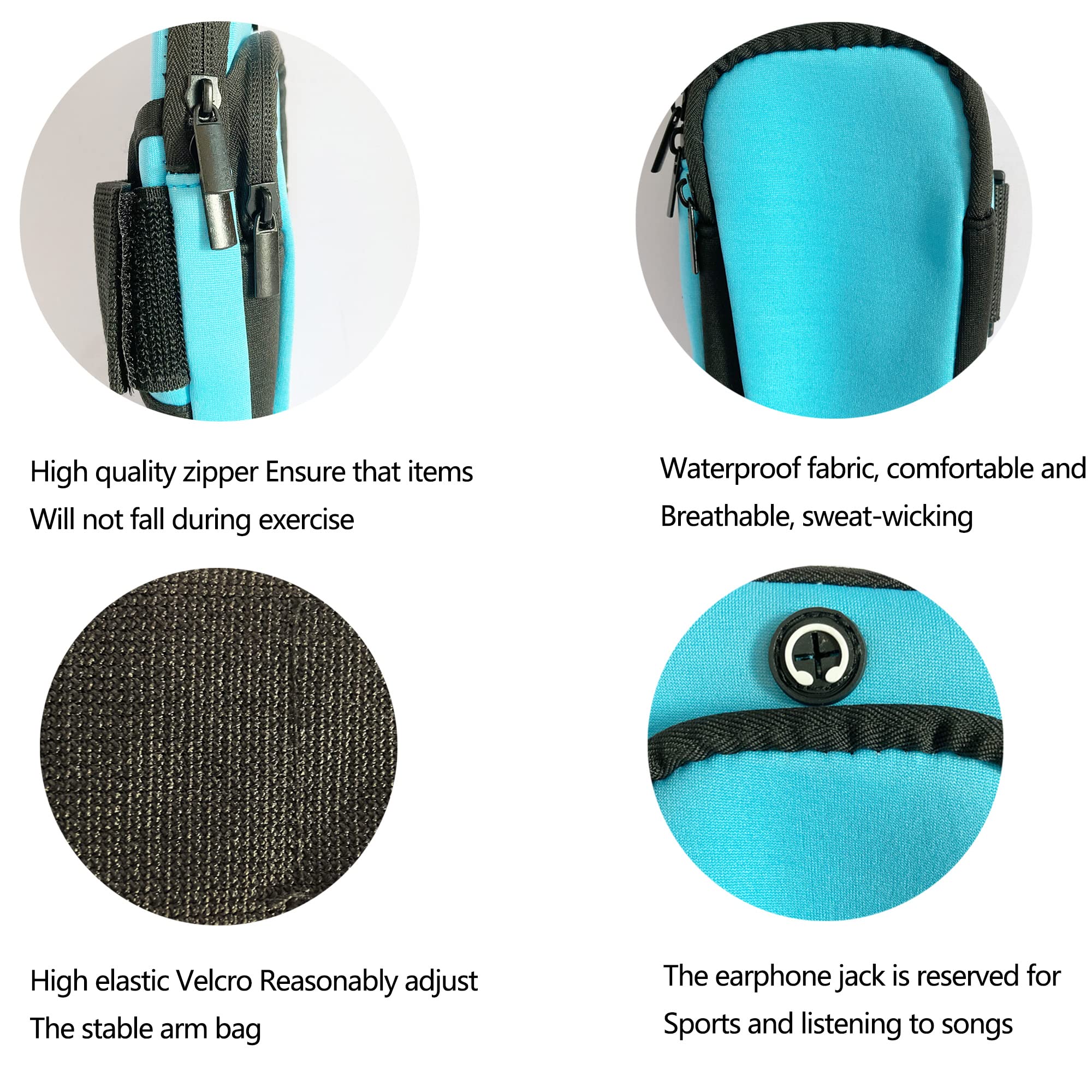 • [Praktyczne wzornictwo] Sportowa torba na nadgarstek ma dwie kieszenie zapinane na zamek błyskawiczny, bardzo elastyczne zapięcia na rzepy, kieszeń na telefony komórkowe, jedną na karty bankowe, gotówkę, klucze, słuchawki i inne małe przedmioty, a otwory na słuchawki są zarezerwowane, aby cieszyć się muzyką podczas uprawiania sportu.