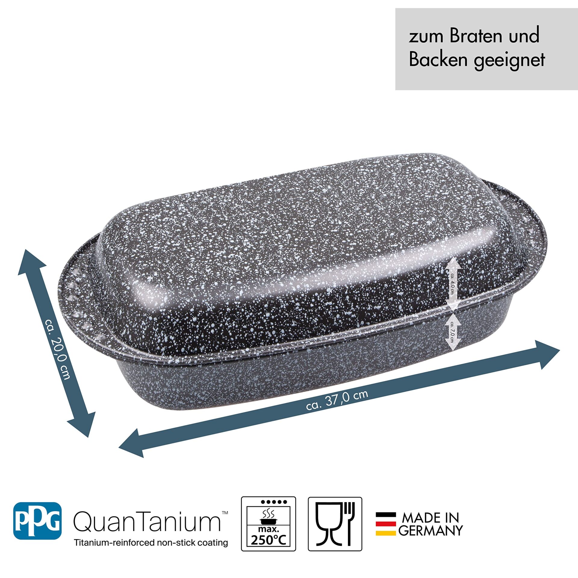 Formy do pieczenia chleba wykonane są z wysokiej jakości materiałów, które zapewniają równomierne rozprowadzenie ciepła podczas pieczenia, co pozwala uzyskać idealnie wypieczony chleb o chrupiącej skórce i miękkim wnętrzu. Dzięki powłoce „Granito”, formy są łatwe w czyszczeniu i odporne na zarysowania, co sprawia, że będą służyć przez wiele lat.