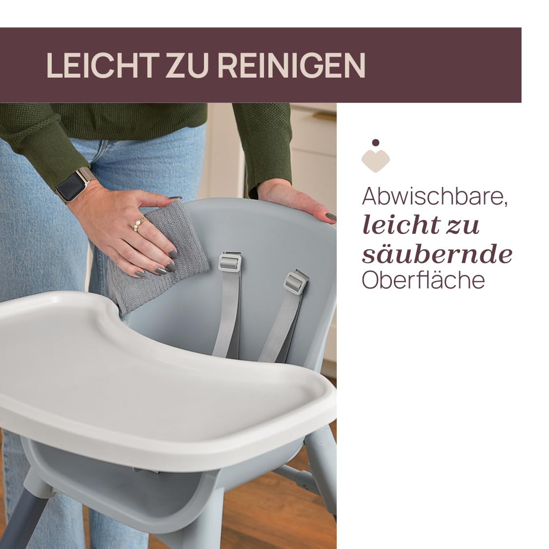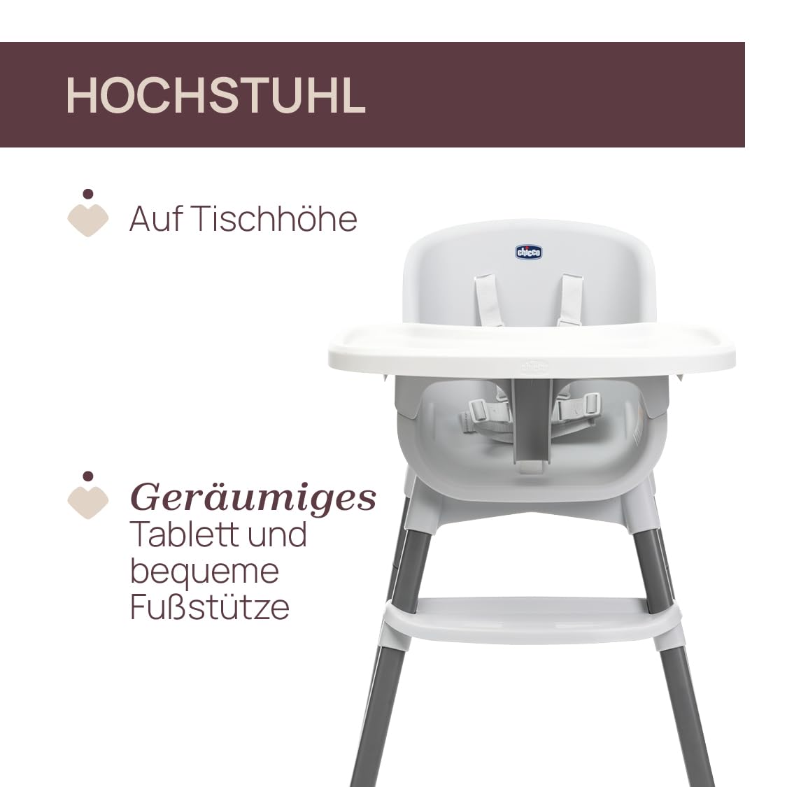 ✅ KOMFORT OD 6: KOMFORT OD 6 MIESIĘCY DO 40 KG: Zapewnia wygodę standardowego wysokiego krzesełka z siedziskiem, które łatwo umyć, z 5-punktowymi pasami i odczepianą tacką. 4 konfiguracje: Krzesełko do karmienia wysokie i niskie – z tacką i 5 punktowymi pasami; Krzesełko wysokie z oparciem dla starszaka i krzesełko