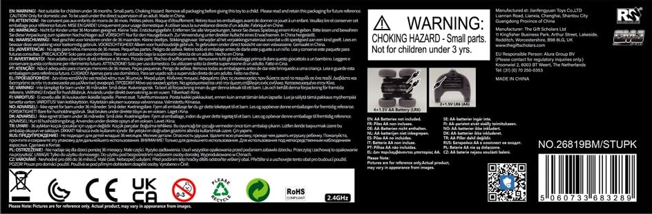 3. 2,4 GHz ANTI-INTERFERENCE CONTROL: Ten samochód jest wyposażony w technologię 2,4 GHz, która zapewnia stabilne i niezakłócone połączenie między samochodem a pilotem. Można go używać na odległość do 25 metrów. Wystarczy dodać 6 baterii AA – 2 do pilota i 4 do samochodu (baterie nie są dołączone).