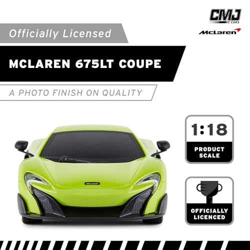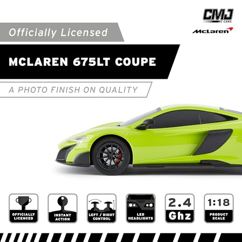 CMJ RC Cars™ McLaren 675LT oficjalnie licencjonowany zdalnie sterowany samochód światła robocze w skali 1:18, 2,4 GHz, zielony