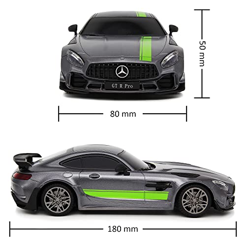 CMJ RC Cars Nowy Mercedes GT Pro AMG to pilotowany radiowo samochód w skali 1:24, który oferuje klientom kompletny przewodnik po produkcie. Ten model samochodu marki CMJ RC Cars jest dostępny w kolorze szarym.