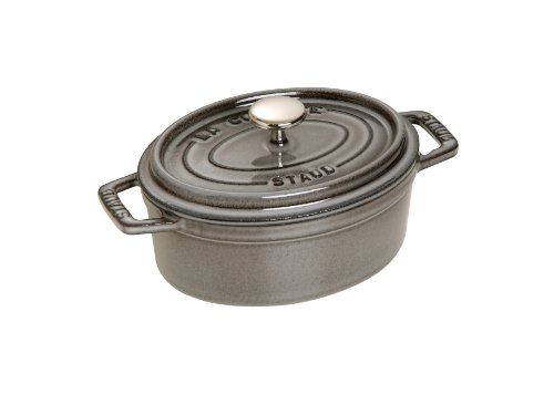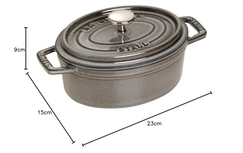 Cocotte owalny grafitowy szary 15 cm – STAUB to wyjątkowy produkt, który łączy w sobie elegancję, funkcjonalność i wysoką jakość wykonania. Wykonany z żeliwa, ten naczynie doskonale przewodzi ciepło, co sprawia, że idealnie nadaje się do anbratenia i duszenia mięsa, ryb oraz warzyw. Dzięki swojej owalnej formie, umożliwia równomierne gotowanie, a także łatwe podawanie potraw bezpośrednio na stół.