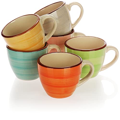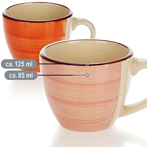 COM-FOUR 6 x filiżanki do espresso, ceramiczne kubki mokka, małe filiżanki do kawy, 125 ml (06 sztuk) – zielony/pomarańczowy/różowy/niebieski/żółty/szary