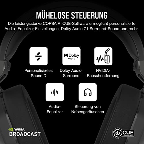Corsair HS65 WIRELESS Gamingowy Zestaw Słuchawkowy – 2,4 GHz o Niskim Poziomie Opóźnień Lub Bluetooth, Dźwięk Przestrzenny Dolby® Audio 7.1, Lekki, Mi