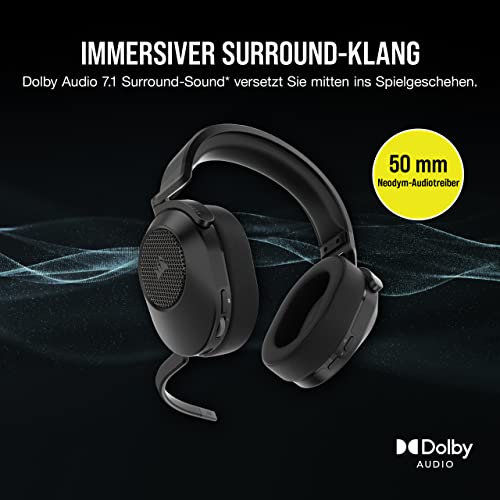 Corsair HS65 WIRELESS Gamingowy Zestaw Słuchawkowy – 2,4 GHz o Niskim Poziomie Opóźnień Lub Bluetooth, Dźwięk Przestrzenny Dolby® Audio 7.1, Lekki, Mikrofon Wszechkierunkowy – Czarny