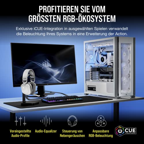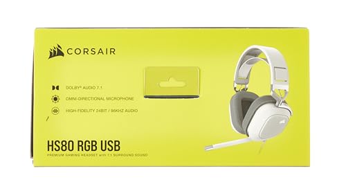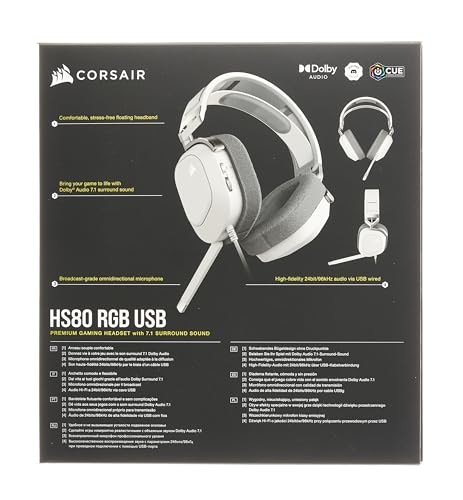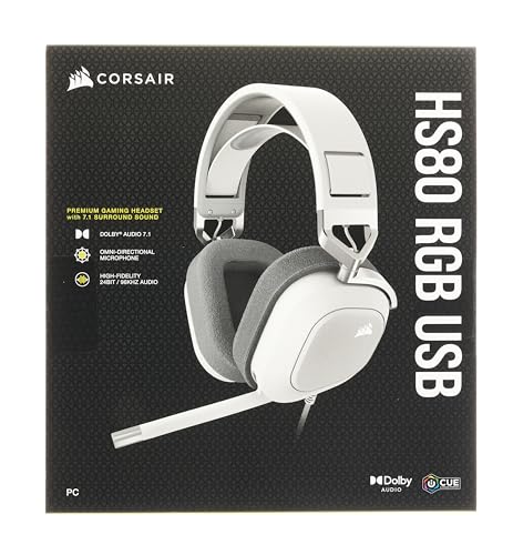 Corsair HS80 RGB USB Gamingowy Zestaw Słuchawkowy Klasy Premium z Dźwiękiem Przestrzennym 7.1 (Mikrofon o Jakości nadawczej, Nauszniki z Pianki z Pamięcią, Dźwięk HiFi, Solidna Konstrukcja) Biała