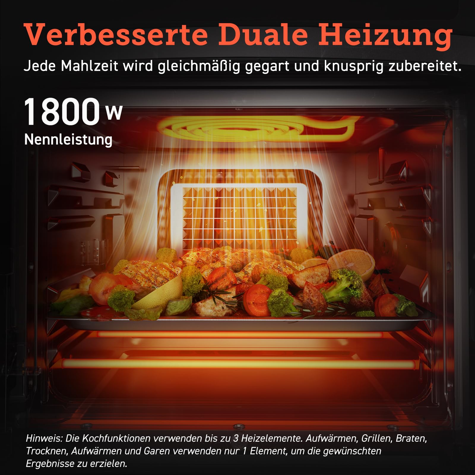 Unikalna konstrukcja COSORI łączy górne i dolne elementy grzewcze, co pozwala na równomierne gotowanie potraw. Dwa wentylatory o podwójnej prędkości zapewniają sprawny cyrkulację powietrza, co skutkuje jeszcze lepszym smakiem. Potrawy są chrupiące na zewnątrz, a jednocześnie soczyste w środku. Dzięki maksymalnej temperaturze gotowania wynoszącej 220°C, możesz osiągnąć doskonałe rezultaty z każdą potrawą.