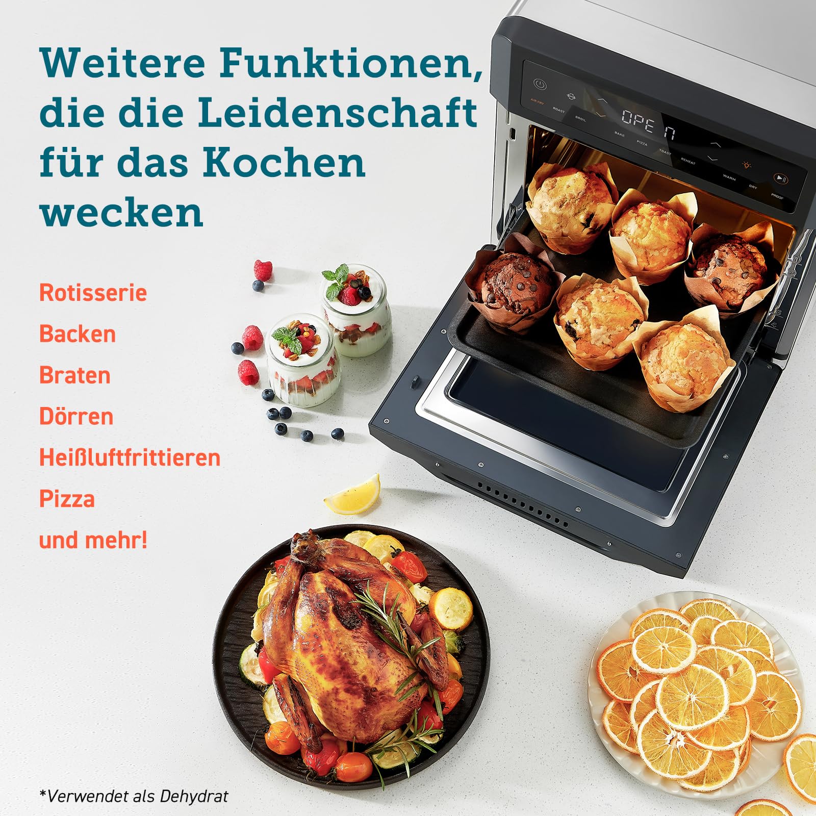 Czy masz dużą rodzinę lub często organizujesz przyjęcia? COSORI Frytkownica na gorące powietrze 12 l sprosta Twoim oczekiwaniom. Pojemność pozwala na przygotowanie całego kurczaka ważącego 1,8 kg lub aż 900 g frytek jednocześnie! Mimo imponującej pojemności, urządzenie zajmuje mniej miejsca niż tradycyjne piekarniki, co czyni je wygodnym rozwiązaniem do każdej kuchni.