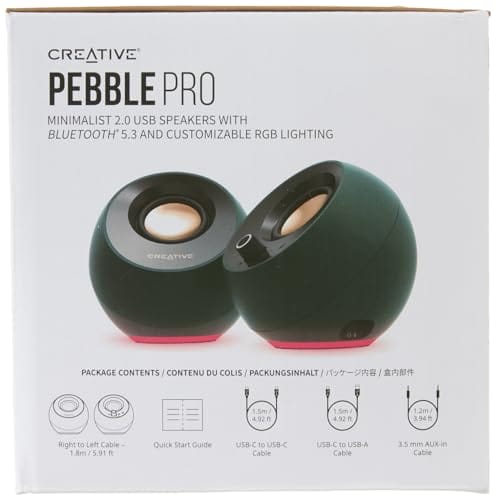 CREATIVE Pebble Pro 2.0 Głośniki USB-C do komputera z Bluetooth 5.3 i konfigurowalnym oświetleniem RGB USB Audio i port słuchawkowy/mikrofon