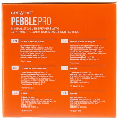 CREATIVE Pebble Pro 2.0 to doskonałe głośniki USB-C, które zapewnią Ci niesamowite doświadczenie dźwiękowe podczas pracy lub rozrywki na komputerze. Wyposażone w najnowszą technologię Bluetooth 5.3, umożliwiają bezprzewodowe połączenie z Twoim urządzeniem. Dodatkowo, głośniki posiadają konfigurowalne oświetlenie RGB, które pozwoli Ci dostosować atmosferę w pomieszczeniu do swojego nastroju.