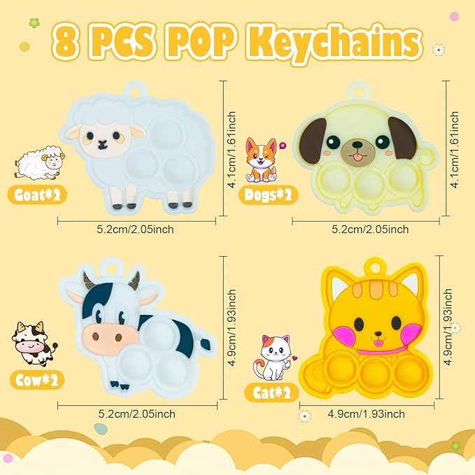 Cuackamily 8 PCS Pop Keyring to wyjątkowy zestaw mini zabawek sensorycznych, które łączą w sobie funkcjonalność breloczka i zabawki antystresowej. Każdy z ośmiu breloczków w zestawie charakteryzuje się unikalnym designem zwierząt, co sprawia, że są one nie tylko praktyczne, ale także urocze i atrakcyjne wizualnie.