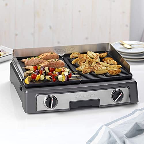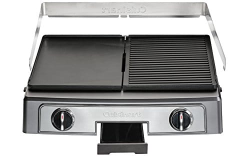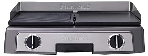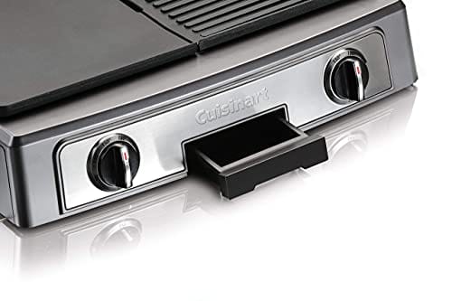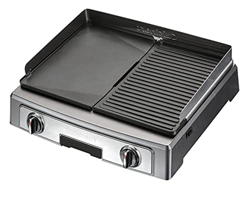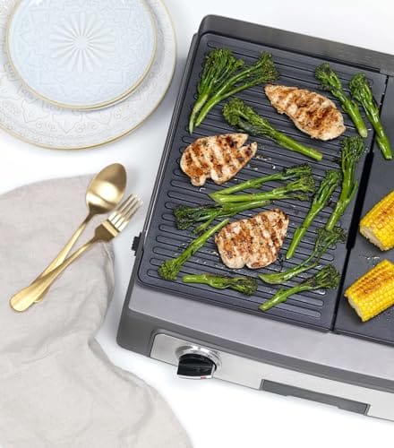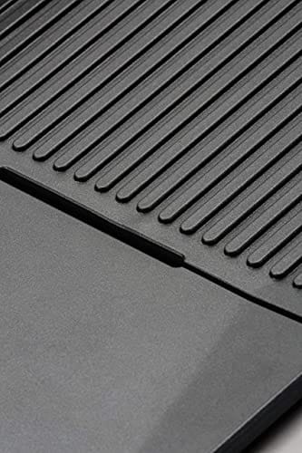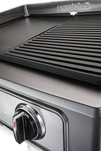 Cuisine PL50E Plancha BBQ Elite to wysokiej jakości grill elektryczny, który zapewnia dużą powierzchnię grillową o wymiarach 23,5 x 33,5 cm. Produkt marki Cuisinart cechuje się solidną konstrukcją wykonaną ze stali nierdzewnej, co gwarantuje trwałość i odporność na korozję.