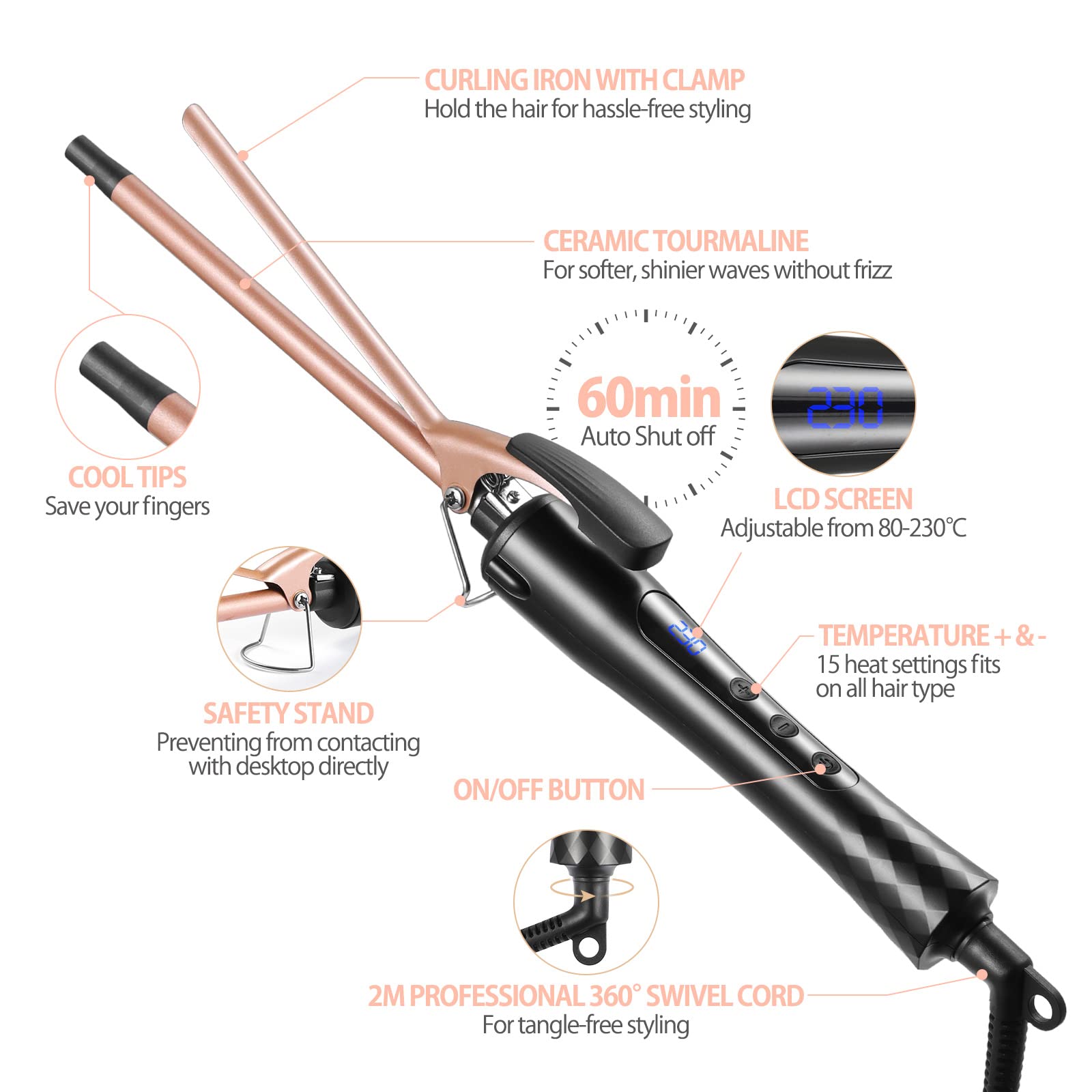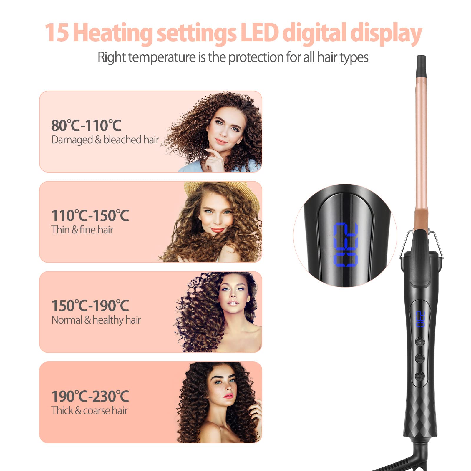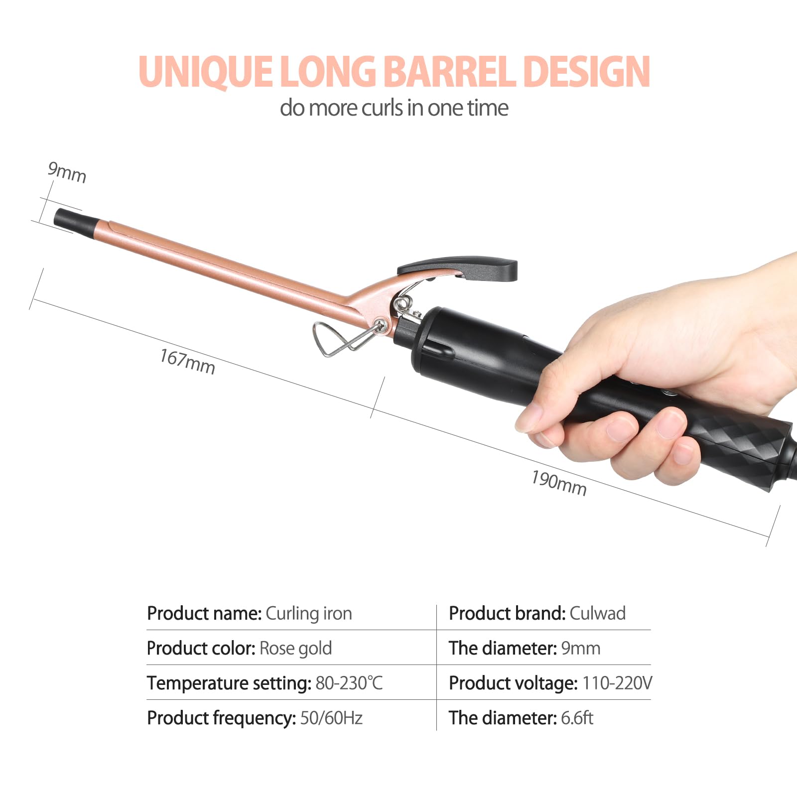 Culwad Lokówka do małych loków 9 mm to doskonałe narzędzie do stylizacji krótkich i średnich włosów, zwłaszcza włosów afro. Dzięki swojej cienkiej ceramicznej końcówce o średnicy 9 mm, lokówka ta umożliwia tworzenie precyzyjnych i trwałych loków o idealnej wielkości. Dodatkowo, produkt jest wyposażony w rękawiczki termiczne, które zapewniają bezpieczne użytkowanie bez ryzyka poparzenia.