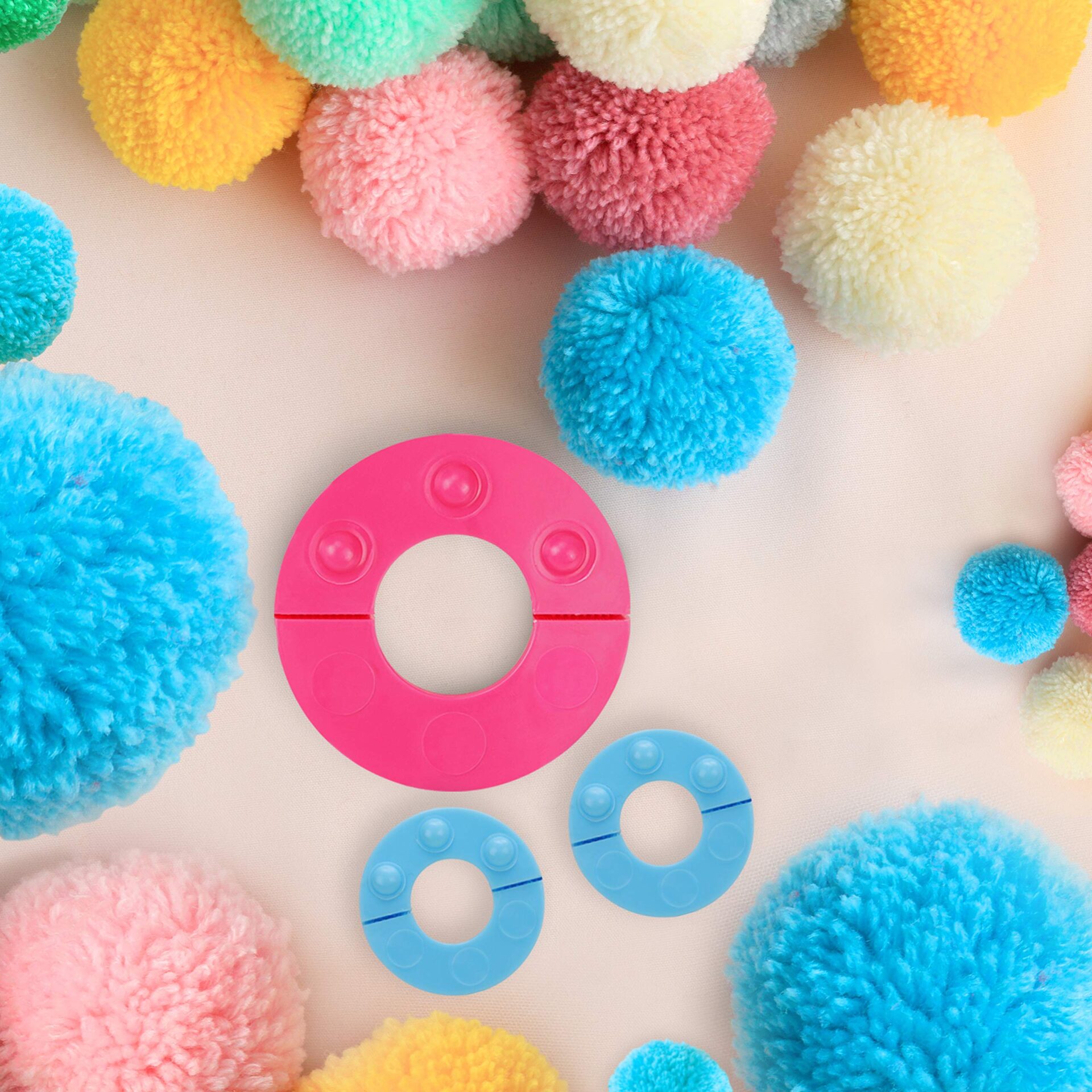 Curtzy Zestaw do robienia pomponów z tworzywa sztucznego (6 sztuk) z nożyczkami do cięcia – 6 rozmiarów 2,5; 3,5; 4,5; 5,5; 7 i 9 cm – do wielokrotnego użytku – do samodzielnego wykonania pomponów,
