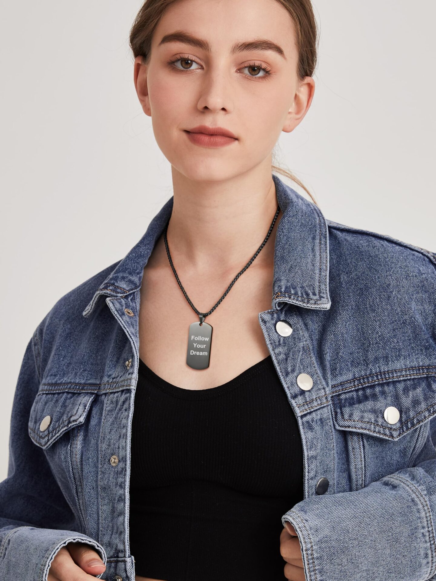 • Informacje o produkcie: pozłacany 18-karatowym złotem, czarny, srebrny kolor do wyboru. Rozmiar wisiorka: 24 x 52,8 mm (0,94 x 2,07 cala). Długość produktu: 50 + 5 cm. Waga netto: 27,9 g.