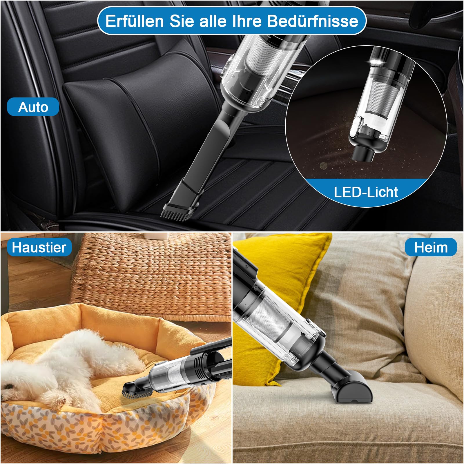 5. Profesjonalny zestaw do czyszczenia domu i samochodu: Bezprzewodowy odkurzacz ręczny jest dostarczany z kompletnym zestawem praktycznych akcesoriów, w tym teleskopowym wężem, długą końcówką i szczotką, które pomogą Ci w czyszczeniu każdej powierzchni, w tym sof, schodów i innych trudno dostępnych miejsc w każdej sytuacji: w samochodzie, salonie, kuchni, sypialni itp.