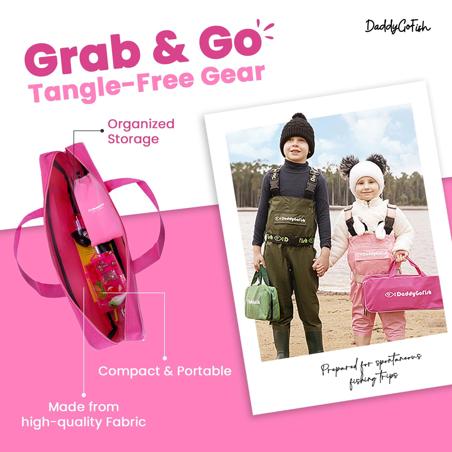 DaddyGoFish Dzieci Teleskopowa wędka Spincast Combo Składany uchwyt na wędkę Pudełko na przynęty Siatka i torba transportowa dla chłopców i dziewcząt