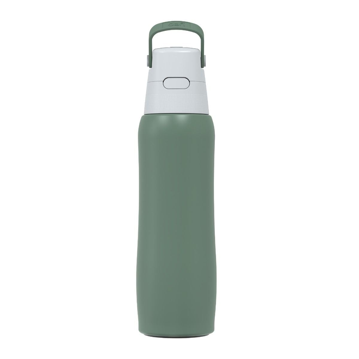 DAFI Butelka filtrująca Solid Steel z filtrem węglowym Kolor Szałwiowy 0,8 l – Nowoczesna butelka na wodę wielokrotnego użytku