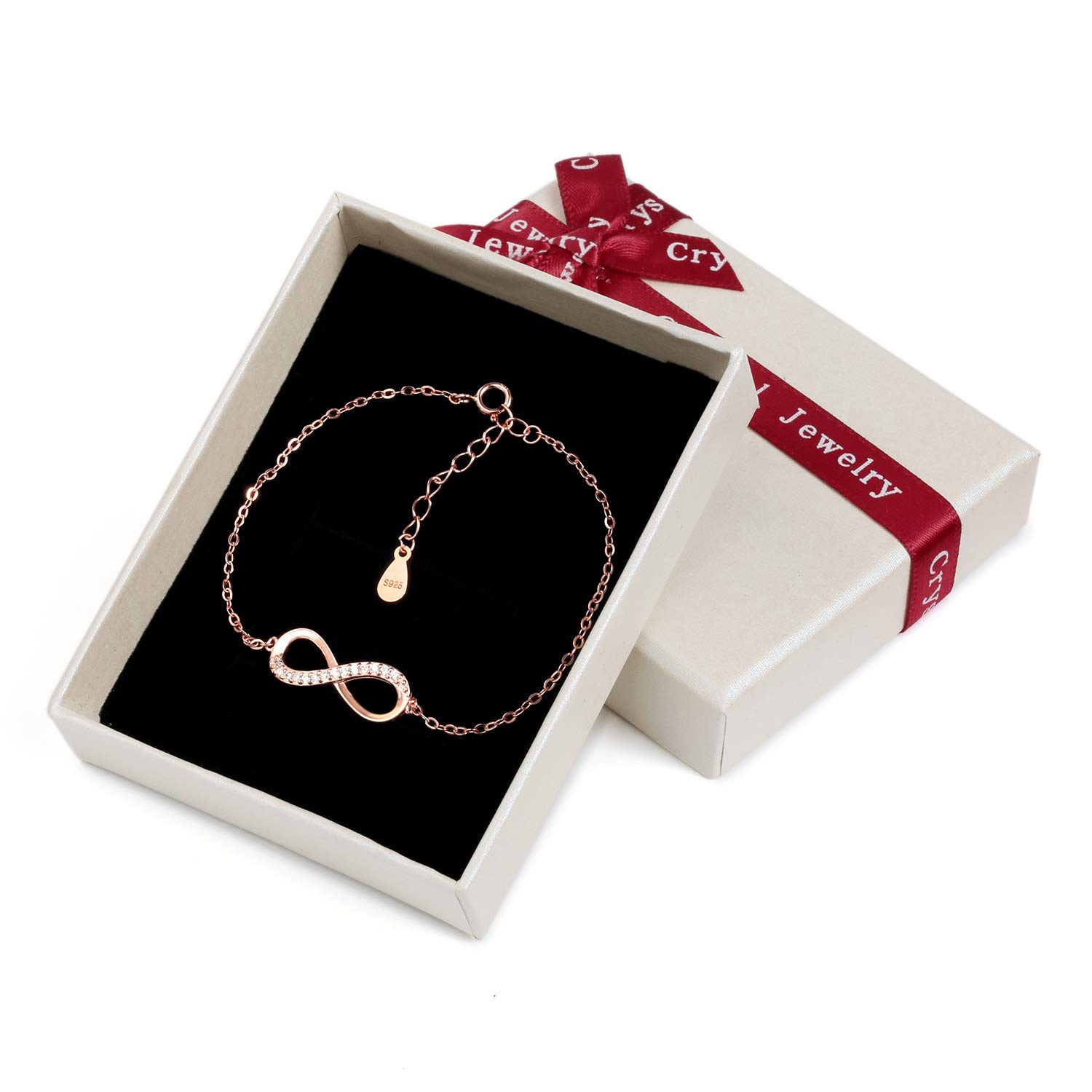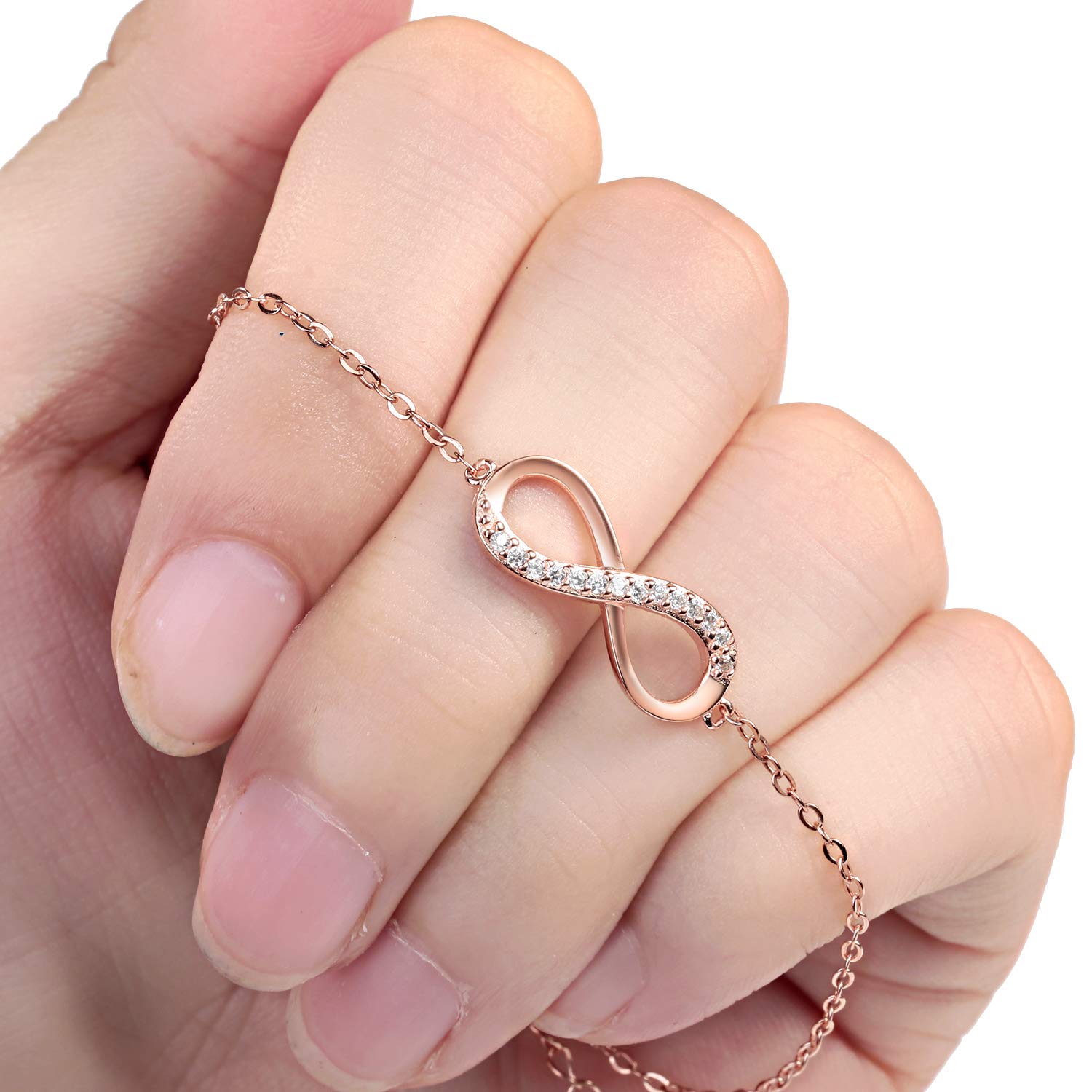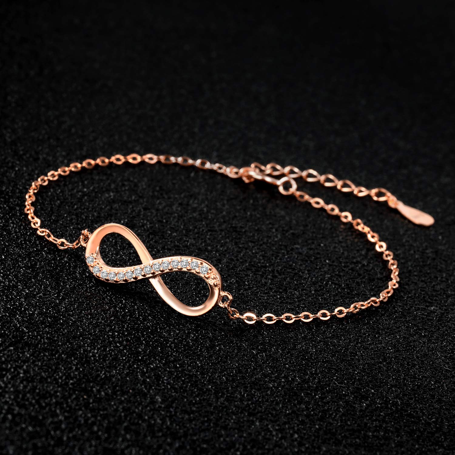 Damska bransoletka, różowe złoto, cyrkonia, srebro wysokiej próby 925, biżuteria dla kobiet i dziewcząt, symbol nieskończoności, nieskończoność, bransoletka na rękę, prezent na Boże Narodzenie, Walent