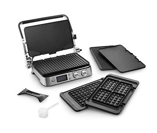 - Lieferumfang: 1 x MultiGrill CGH1030D inkl. 3 Plattensets (Grill, Braten, Waffeln), Dosierhilfe für Waffelteig & Spatel von De’Longhi.
