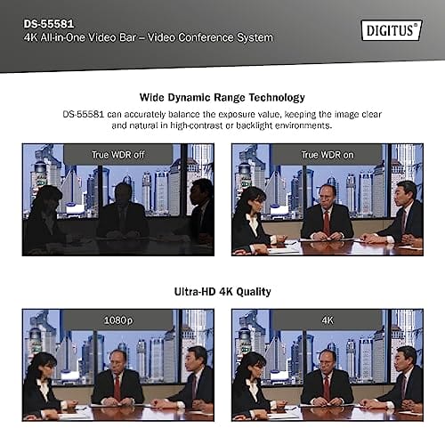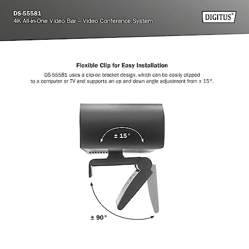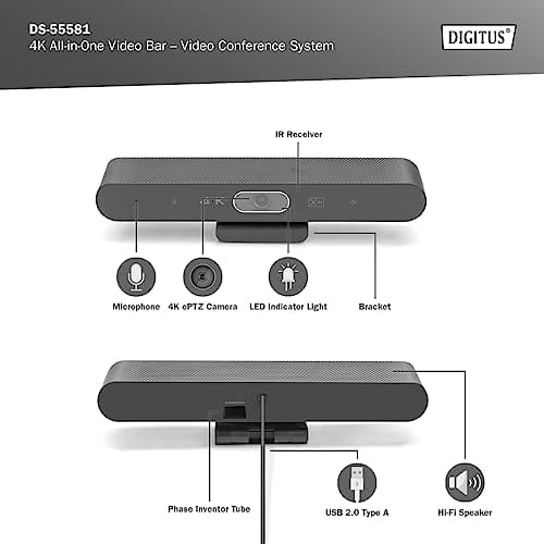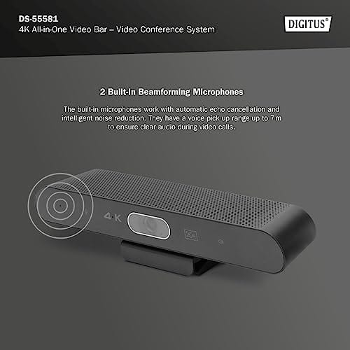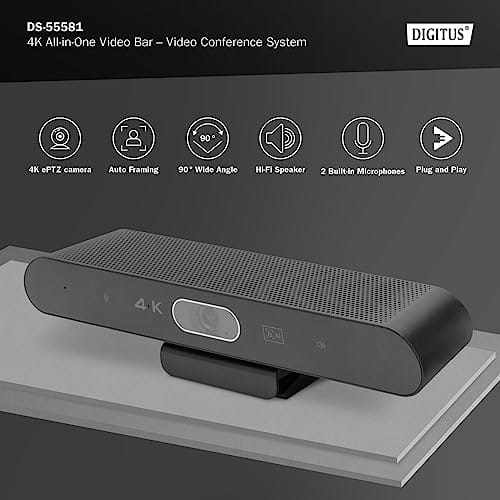 DIGITUS 4K All-In-One Video Bar Mini to zaawansowany system wideokonferencyjny, który zapewnia doskonałą jakość obrazu i dźwięku. Jest wyposażony w wiele funkcji, które umożliwiają płynne i efektywne prowadzenie spotkań online.