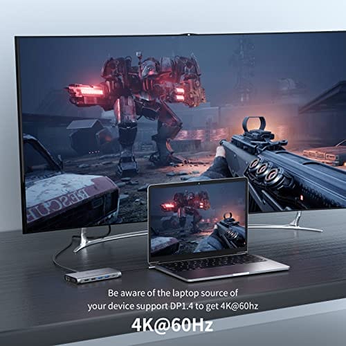 ✅ Potrójny wyświetlacz 4K:: Potrójny wyświetlacz 4K: Stacja dokująca posiada potrójny tryb wyświetlania, który trzykrotnie zwiększa wydajność pracy. Rozdzielczość HDMI do 4K@60Hz, jeśli Twój laptop obsługuje DP1.4. Jeśli źródło sygnału wejściowego obsługuje tylko standard DP1.2, rozdzielczość HDMI do 4K@30Hz. 2560×1440, 1920×1