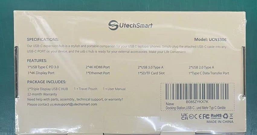 ✅ Innowacyjny hub USB: Innowacyjny hub USB C: Nasz Utechsmart USB C Hub łączy w sobie funkcje huba USB C i stacji dokującej. Lekki aluminiowy korpus, przenośna konstrukcja, kompatybilny z USB 3.1 Gen2 / Thunderbolt 3 typ c i do 100W mocy ładowania dla systemu hosta.