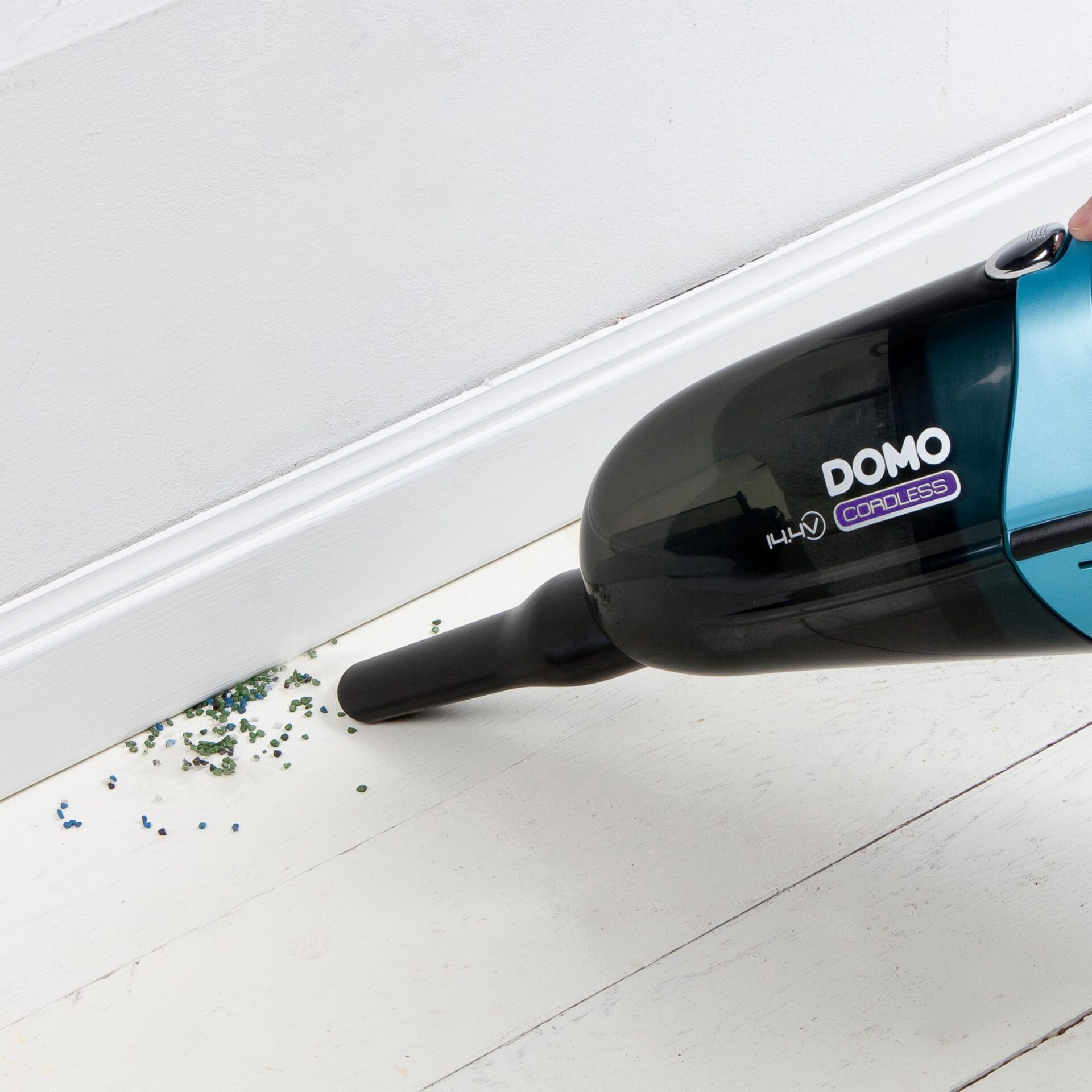 Domo DO211S to odkurzacz ręczny ze szczotką rolkową XL, który zapewnia optymalne rezultaty czyszczenia. Posiada mocną baterię o napięciu 14,4V, co sprawia, że jest idealny do usuwania głęboko osadzonego brudu, takiego jak sierść zwierząt. Odkurzacz jest bezprzewodowy, co czyni go również idealnym do użytku w kamperze lub przyczepie kempingowej. Stacja ładowania jest przeznaczona do montażu na ścianie, co pozwala zaoszczędzić miejsce podczas przechowywania. W zestawie znajduje się 1 odkurzacz ręczny, 1 motorowa szczotka rolkowa, 1 szczotka do czyszczenia trudno dostępnych miejsc, 1 szczotka do kurzu oraz materiały montażowe. Odkurzacz Domo DO211S ma wymiary 37x9x16 cm i waży około 1,3 kg. Jest dostępny w kolorze niebieskim. Jest to idealne narzędzie do sprzątania powierzchni, usuwania kurzu, okruchów czy sierści zwierząt.