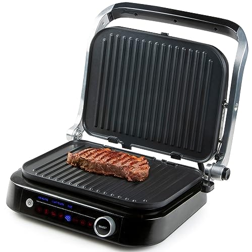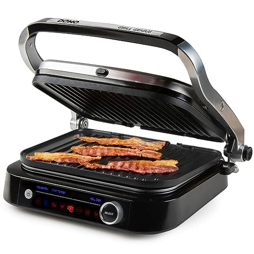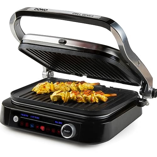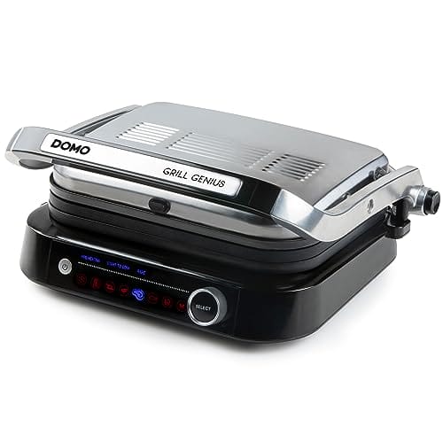 DOMO Genius elektryczny grill kontaktowy z powłoką nieprzywierającą i wyświetlaczem ze stali nierdzewnej w kolorze czarnym to doskonałe urządzenie do przygotowywania smacznych potraw na grillu w wygodny i szybki sposób. Ten grill elektryczny oferuje wiele funkcji i cech, które sprawiają, że jest niezastąpiony w każdej kuchni.
