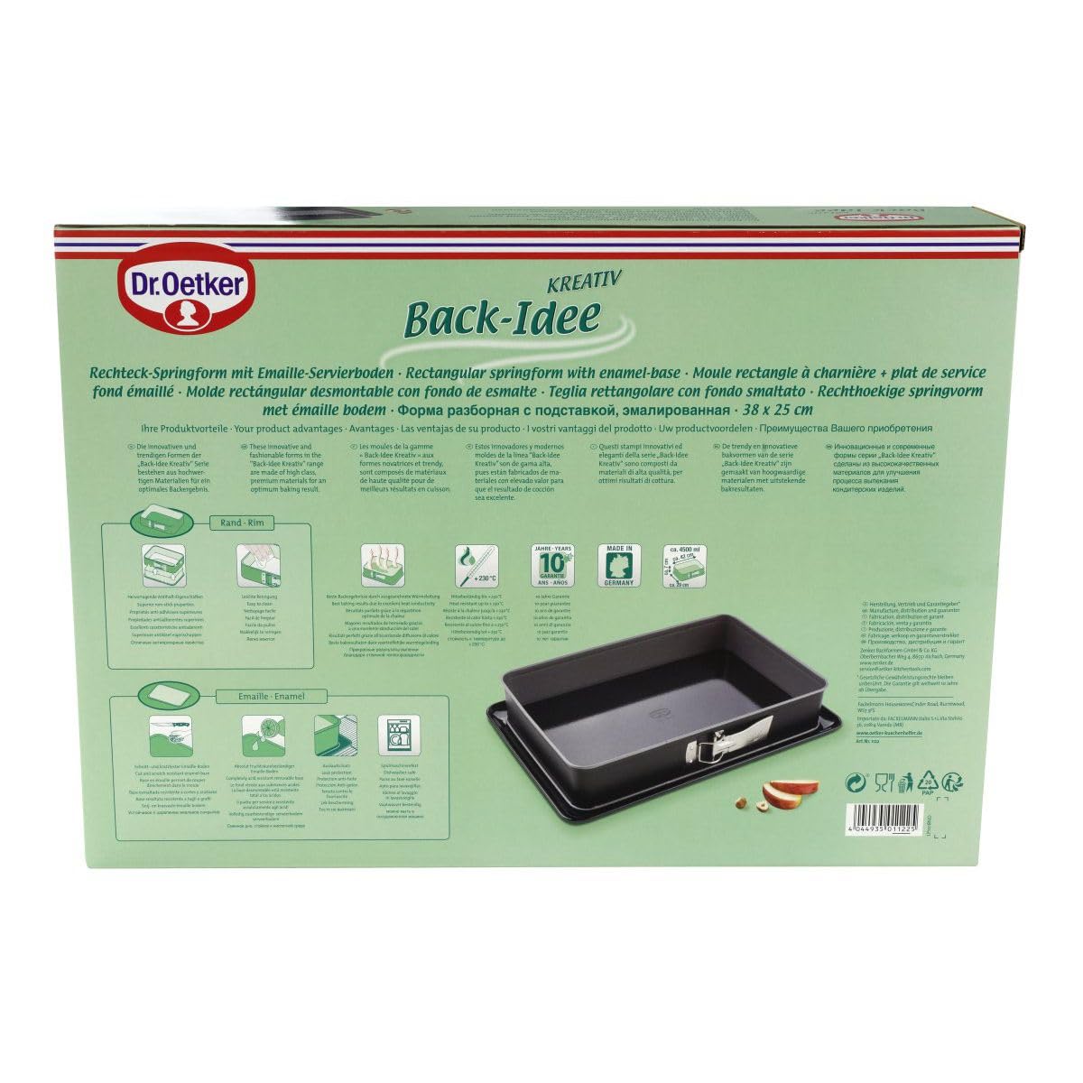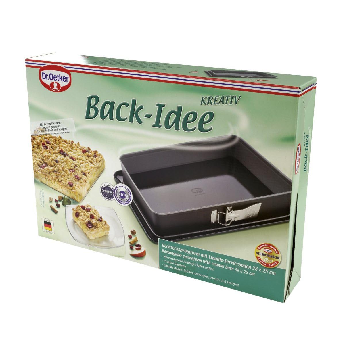 Dr. Oetker 1122 prostokątna tortownica z emaliowanym dnem 38 x 25 cm z dnem, prostokątna blacha na ciasto, do dużych ciast z blachy, seria Back-Idee k