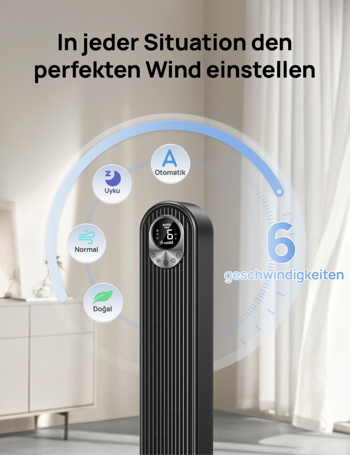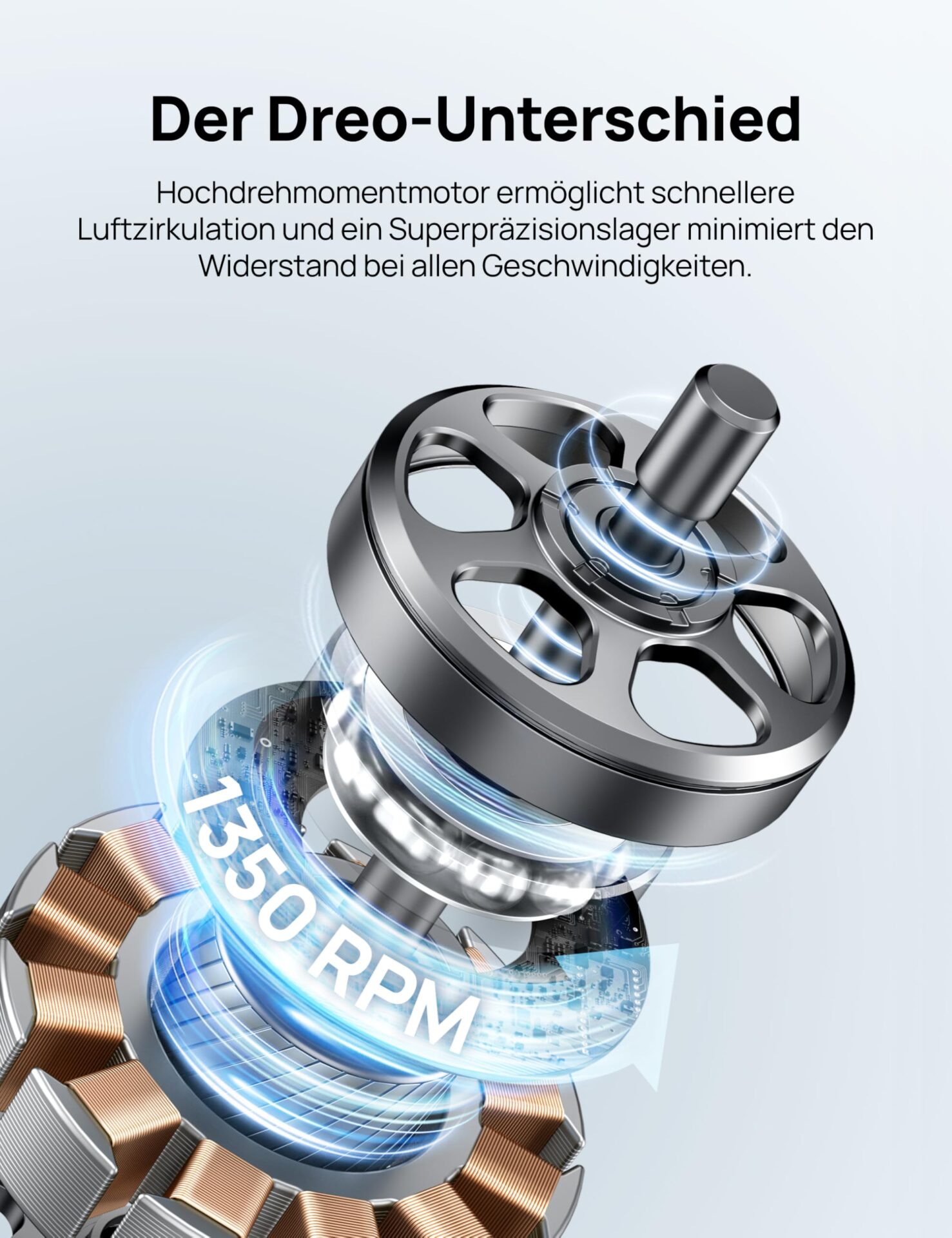**Ekologiczny i energooszczędny**: Z mocą 50 W, wentylator Dreo jest nie tylko wydajny, ale także przyjazny dla środowiska, co czyni go ekonomicznym wyborem na długie lata.
