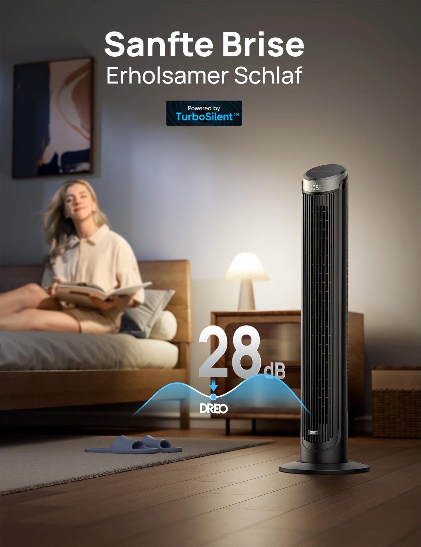 **Cicha praca**: Dzięki technologii pracy na poziomie hałasu zaledwie 28 dB, wentylator Dreo zapewnia komfortową atmosferę, nie zakłócając spokoju. To idealne rozwiązanie dla osób, które cenią sobie ciszę podczas snu lub pracy.