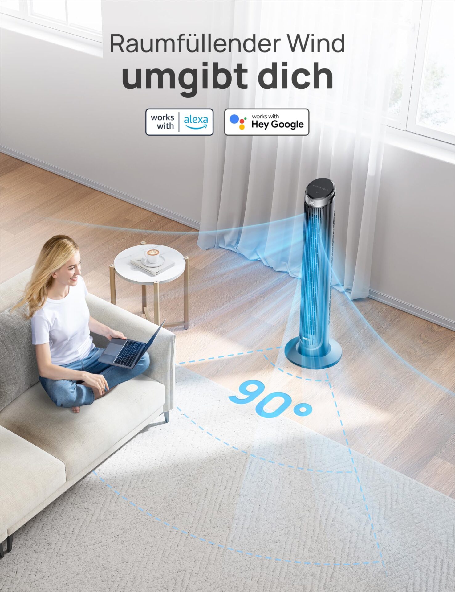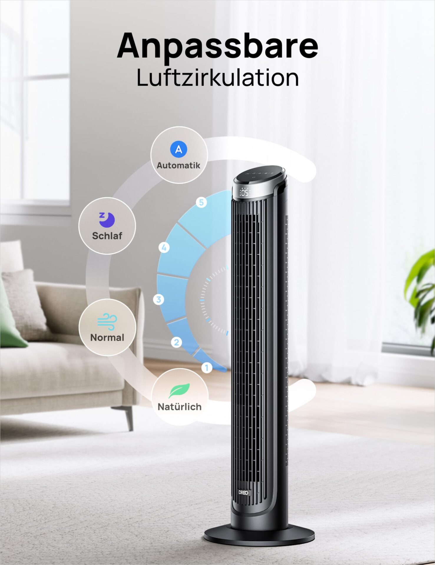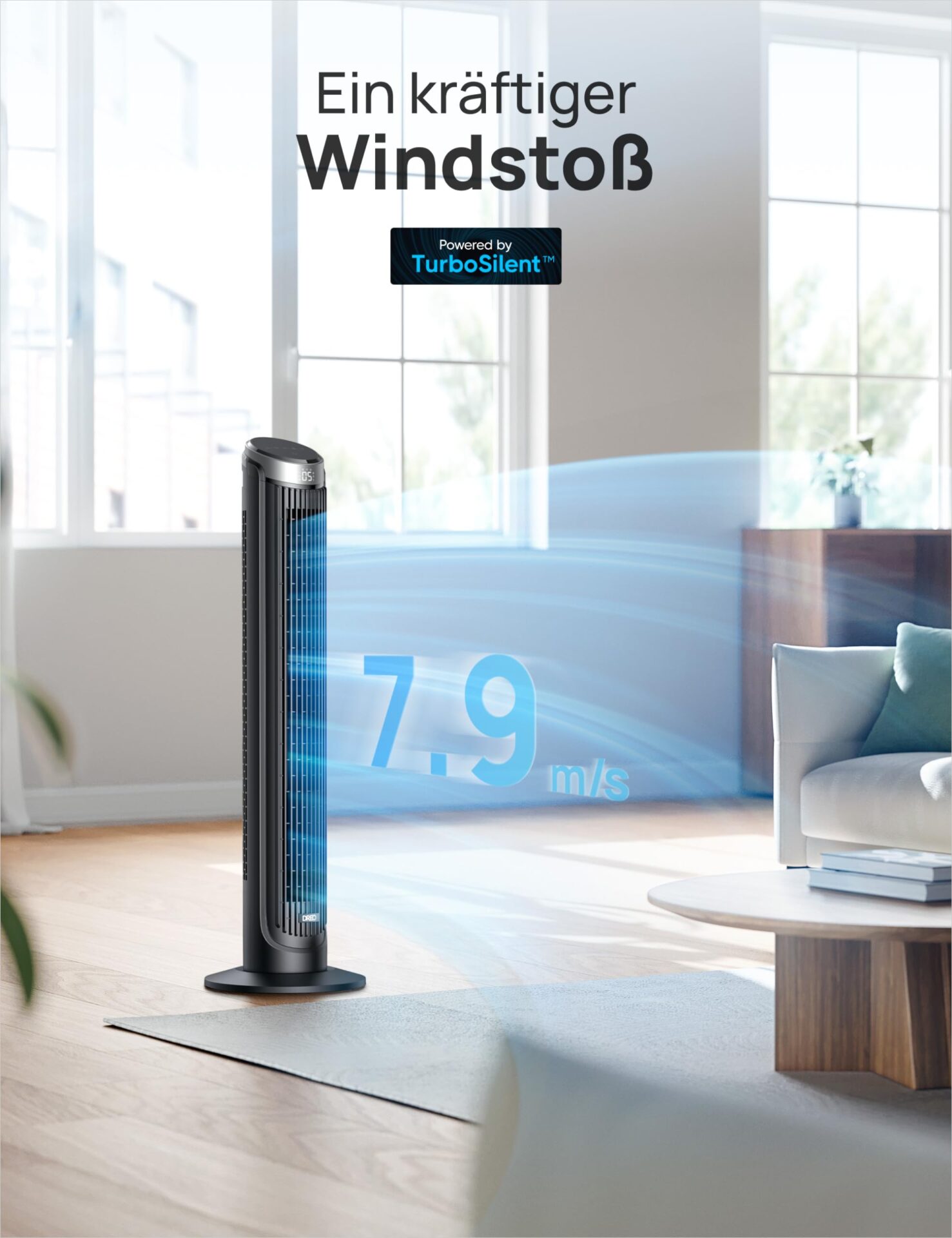 **Wysoka wydajność**: Z prędkością wentylacji do 79 m/s, Dreo skutecznie chłodzi powietrze, zapewniając przyjemny chłód nawet w najgorętsze dni. Jego oscyllacja 90° pozwala na równomierne rozprowadzenie powietrza w całym pomieszczeniu, co zwiększa efektywność chłodzenia.