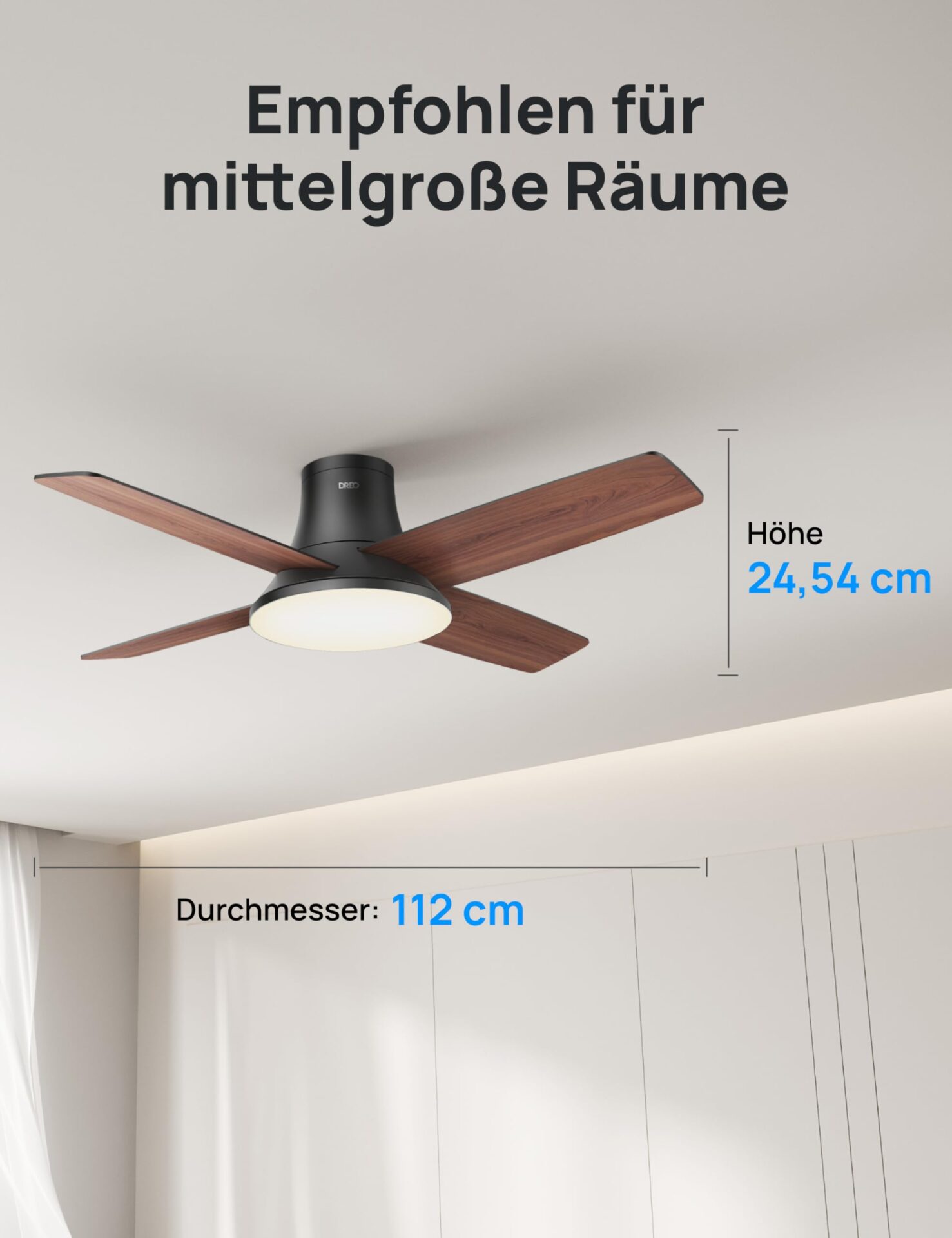 ✅ Nadaj swojemu domowi: Nadaj swojemu domowi jaśniejszy wygląd: dzięki 6 poziomom jasności (do 2400 lumenów, odpowiednik żarówki LED 24W) i 5 odcieni światła (2700 K do 6500 K), niskoprofilowy wentylator sufitowy ze światłem nadaje każdemu pomieszczeniu nowoczesny wygląd, niezależnie od tego, czy jest to sypialnia, salon c