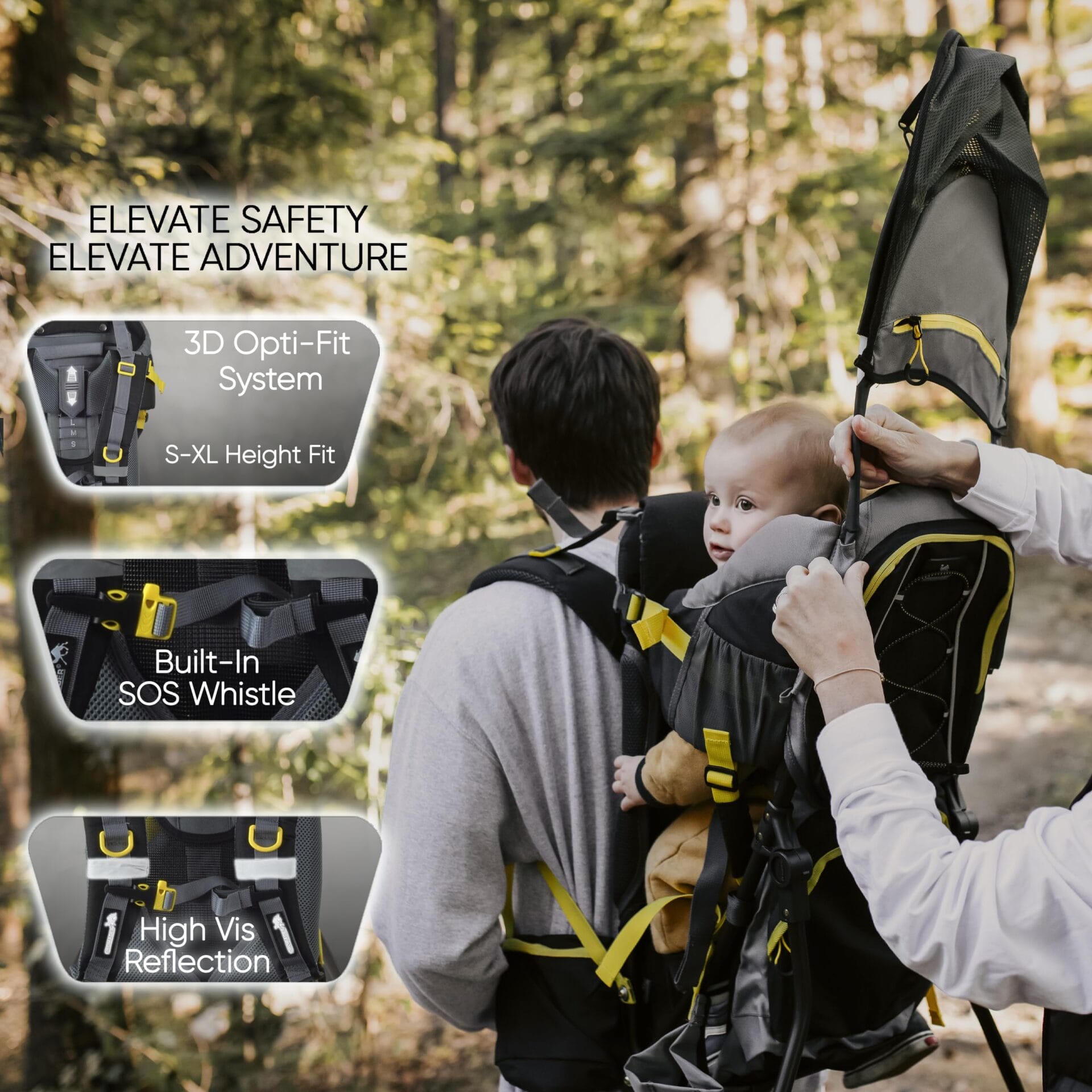 GOTOWE NA PRZYGODY:: GOTOWE NA PRZYGODY: Idealne do wędrówek i podróży – z daszkiem przeciwsłonecznym i osłoną przeciwdeszczową, odblaskowymi elementami, gwizdkiem SOS i stabilną podpórką do bezpiecznego użytkowania na zewnątrz