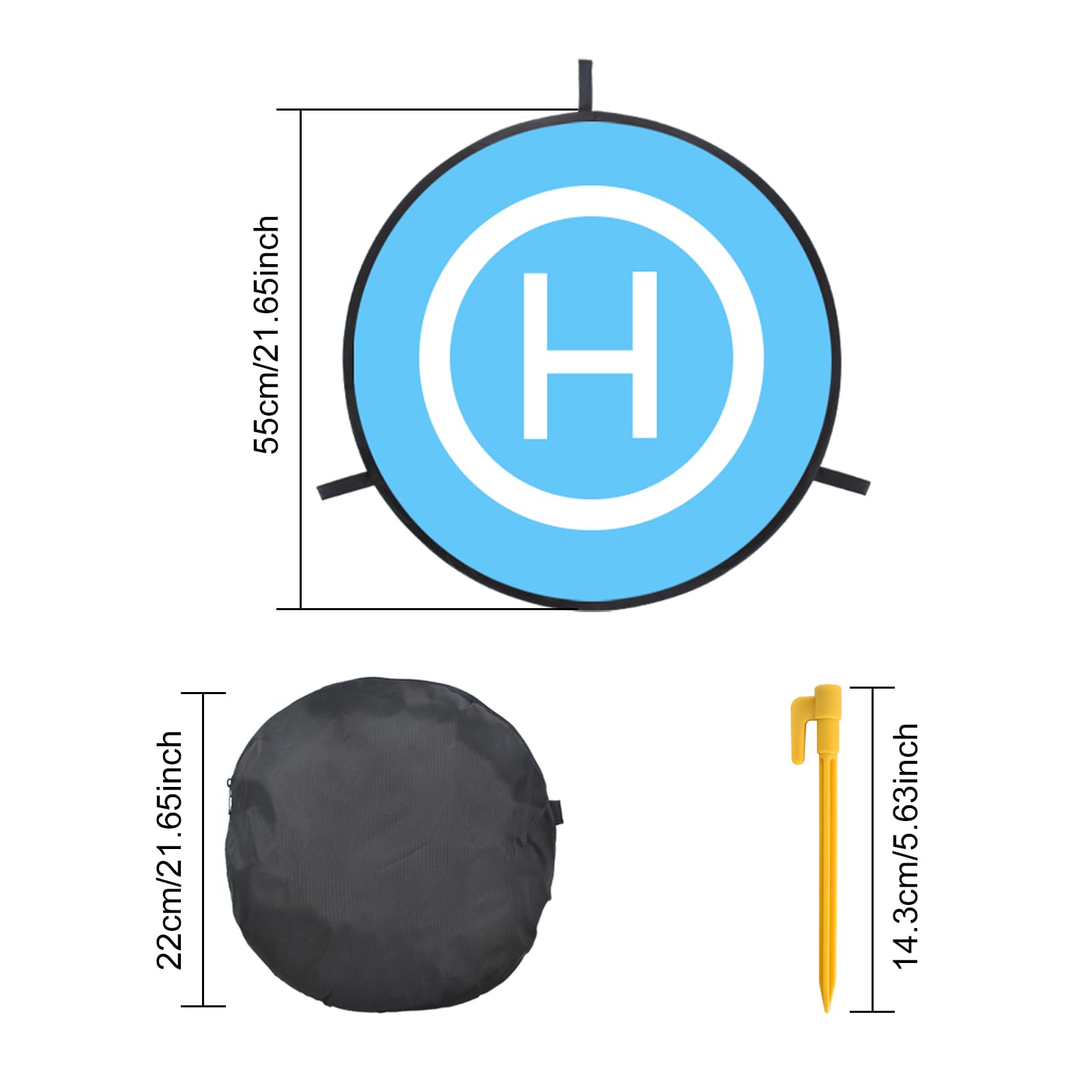 ✅ 👉【Szerokie zastosowanie】Dwustronna przenośna: 👉【Szerokie zastosowanie】Dwustronna przenośna płyta lądowania o średnicy 22 cali (55 cm) idealnie pasuje do helikopterów-dronów RC, dronów PVB, DJI Mavic Pro Phantom 2/3/4/Pro, Antel Robotic, Holy Stone Gopro Kama, Parrot i drona 3DR Solo itp.