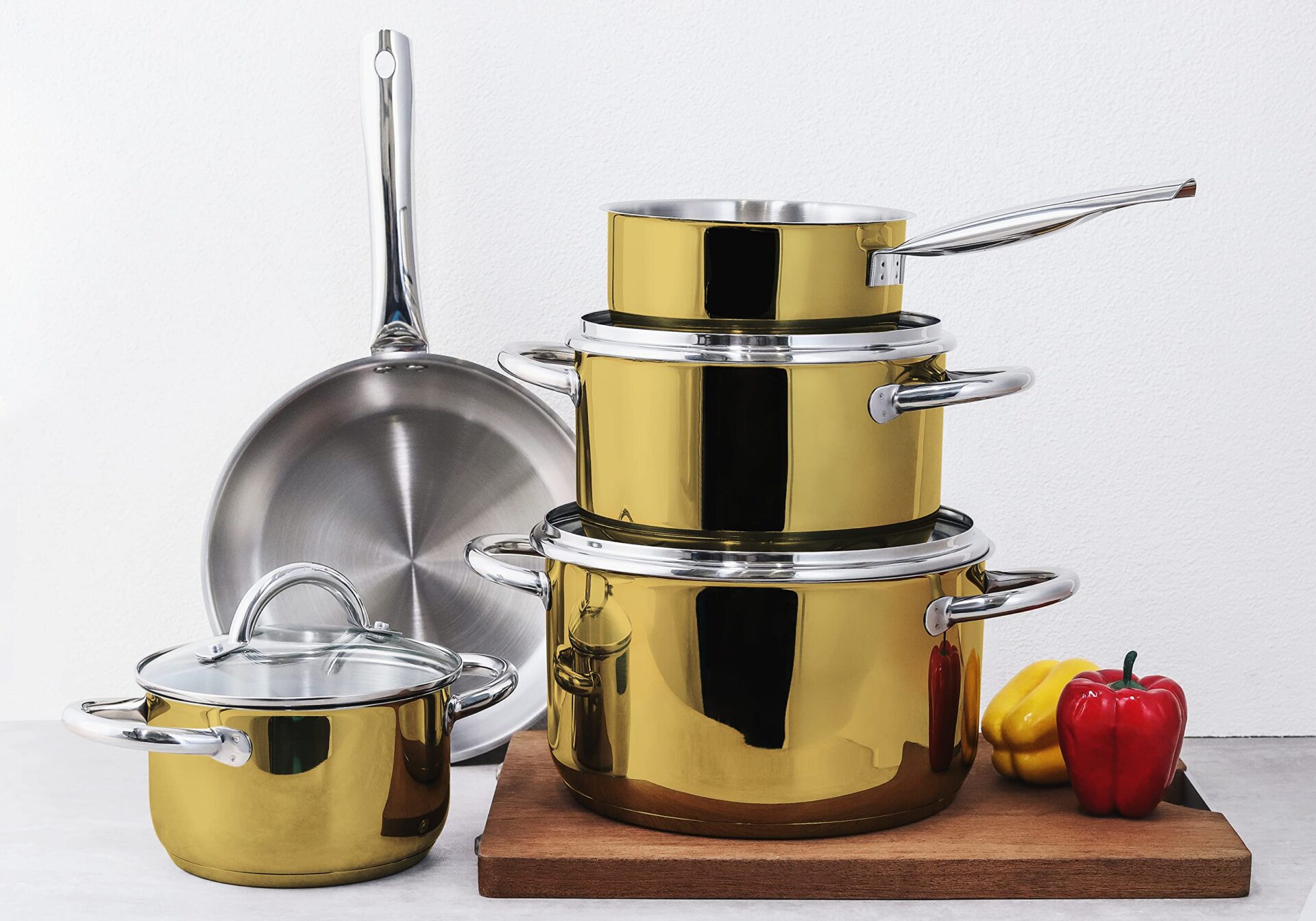 Zestaw naczyń kuchennych ECHTWERK 8 el. ze stali nierdzewnej, złota edycja