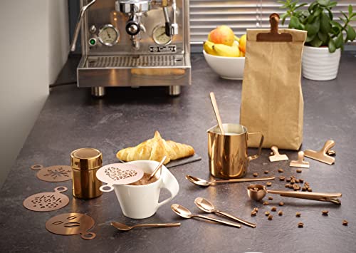 ECHTWERK Zestaw akcesoriów do kawy, 23 sztuki, 600 ml, 4 espresso, 4 cappuccino, 4 listwy 4 klipsy do kawy, 4 szablony do kawy, 4 łyżeczki do kawy, miedź barista