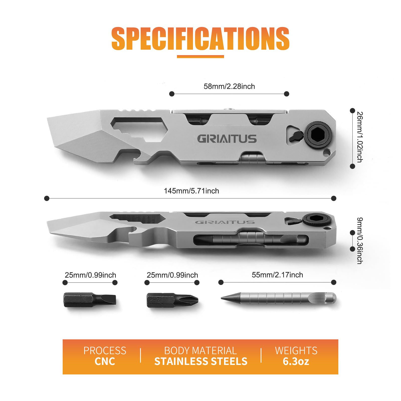 ⛺Przenośny i przyjazny: ⛺Przenośny i przyjazny dla użytkownika: Zaprojektowane z myślą o wygodzie, to narzędzie wielofunkcyjne EDC zawiera zdejmowany klips z tyłu, który można łatwo przymocować do paska lub kieszeni. Nie chodzi tylko o posiadanie odpowiednich narzędzi – to narzędzie kieszonkowe na prąd stały, które można ł