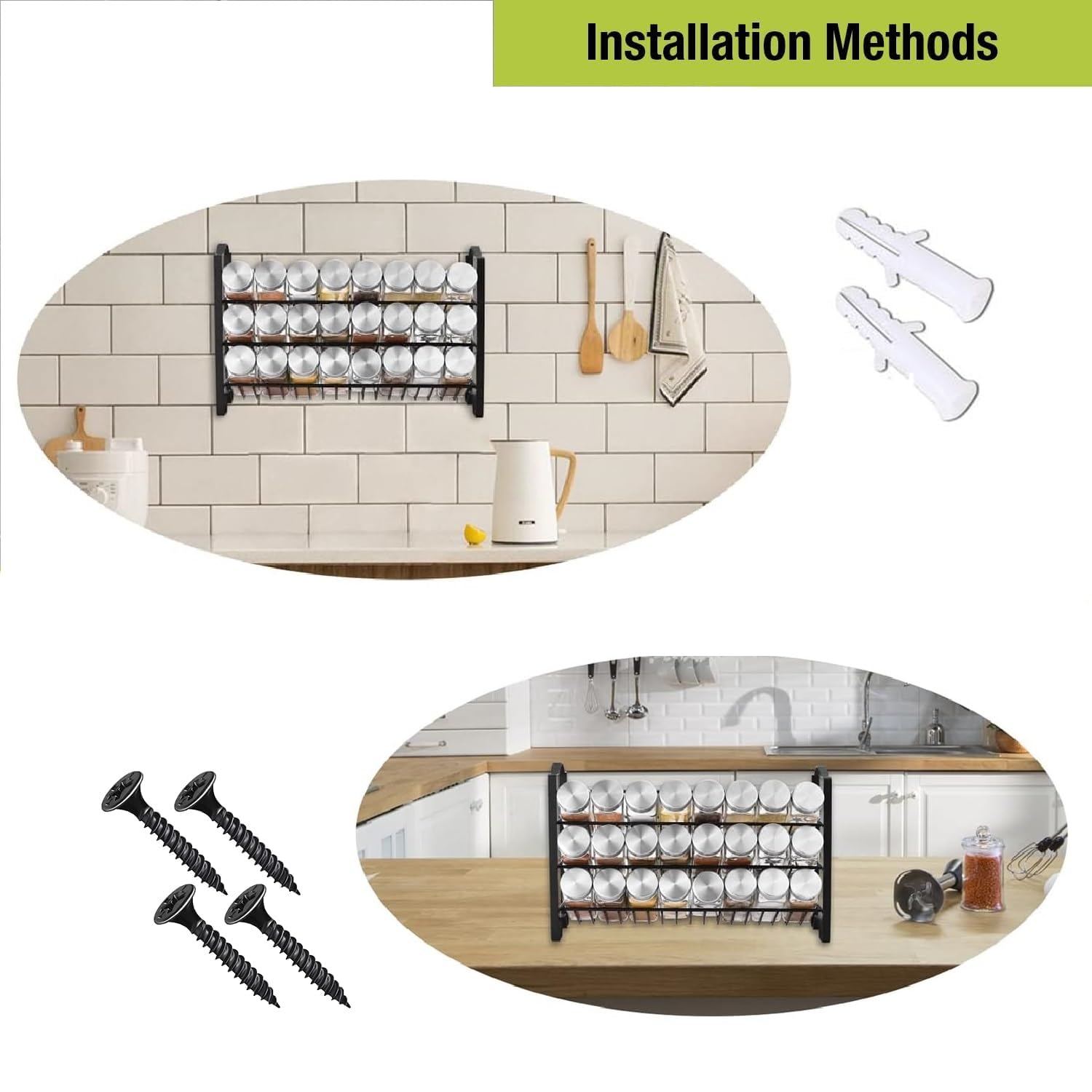 ✅ ŁATWE UŻYTKOWANIE: przyrost: ŁATWE UŻYTKOWANIE: przyrost jest w pełni zmontowany, konstrukcja jest stabilna i nie chwieje, po prostu przyklej etykiety do słoików i umieść antypoślizgowe naklejki na podstawie lub umieść na ścianie za pomocą śrub i kołków.