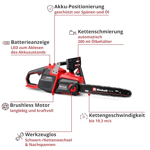 Einhell Profesjonalna akumulatorowa piła łańcuchowa GP-LC 36/40 Li BL-Solo (36 V, długość cięcia 38 cm, bezszczotkowa, prędkość łańcucha 19 m/s, automatyczne smarowanie łańcucha, bez akumulatora)