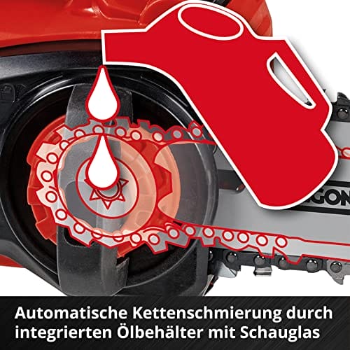- Dołączone części składowe: 1x akumulatorowa piła łańcuchowa, 1x łańcuch Oregon: 90PX033X; 1x szyna Oregon: 084LNEA041, 1 x zabezpieczenie