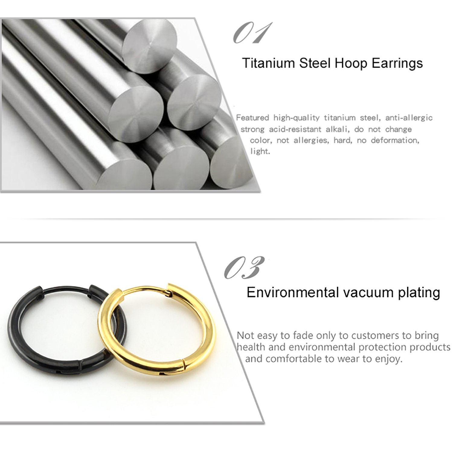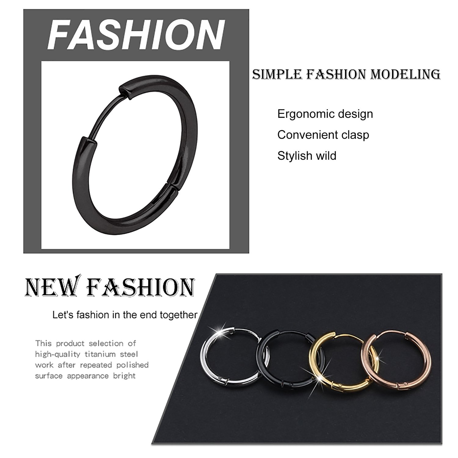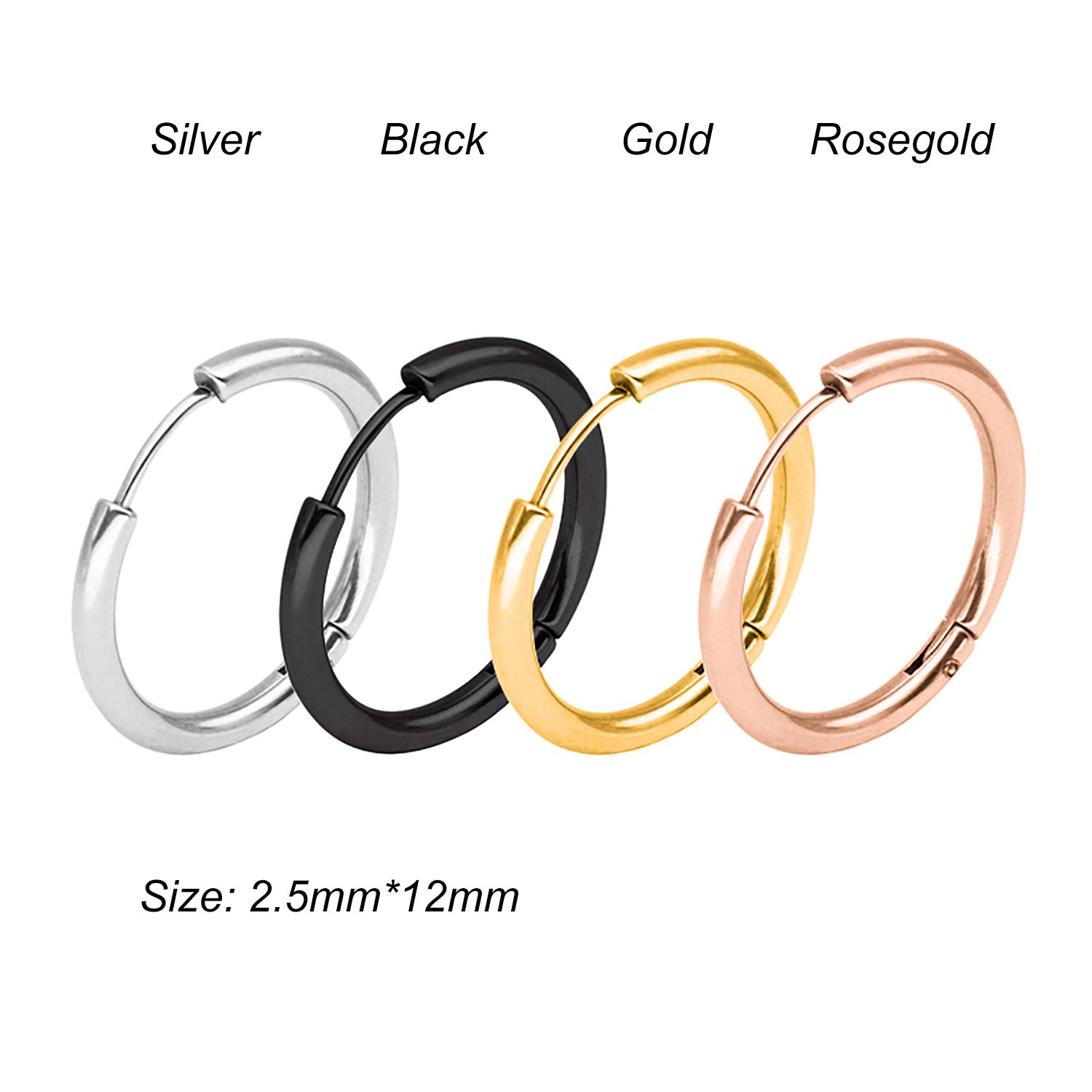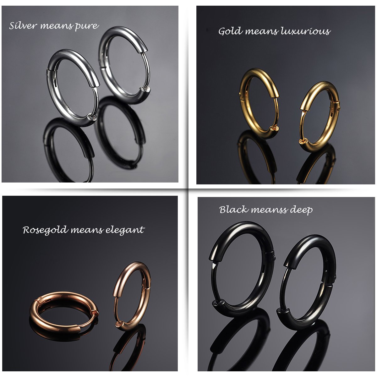 Zestaw zawiera kolczyki w kolorach srebrnym, czarnym, złotym oraz różowym złocie, co pozwala dopasować je do różnorodnych stylizacji i okazji. Dostępne są w różnych rozmiarach, począwszy od 8mm aż do 16mm, co pozwala na wybór zarówno małych, delikatnych kolczyków, jak i większych, bardziej efektownych.