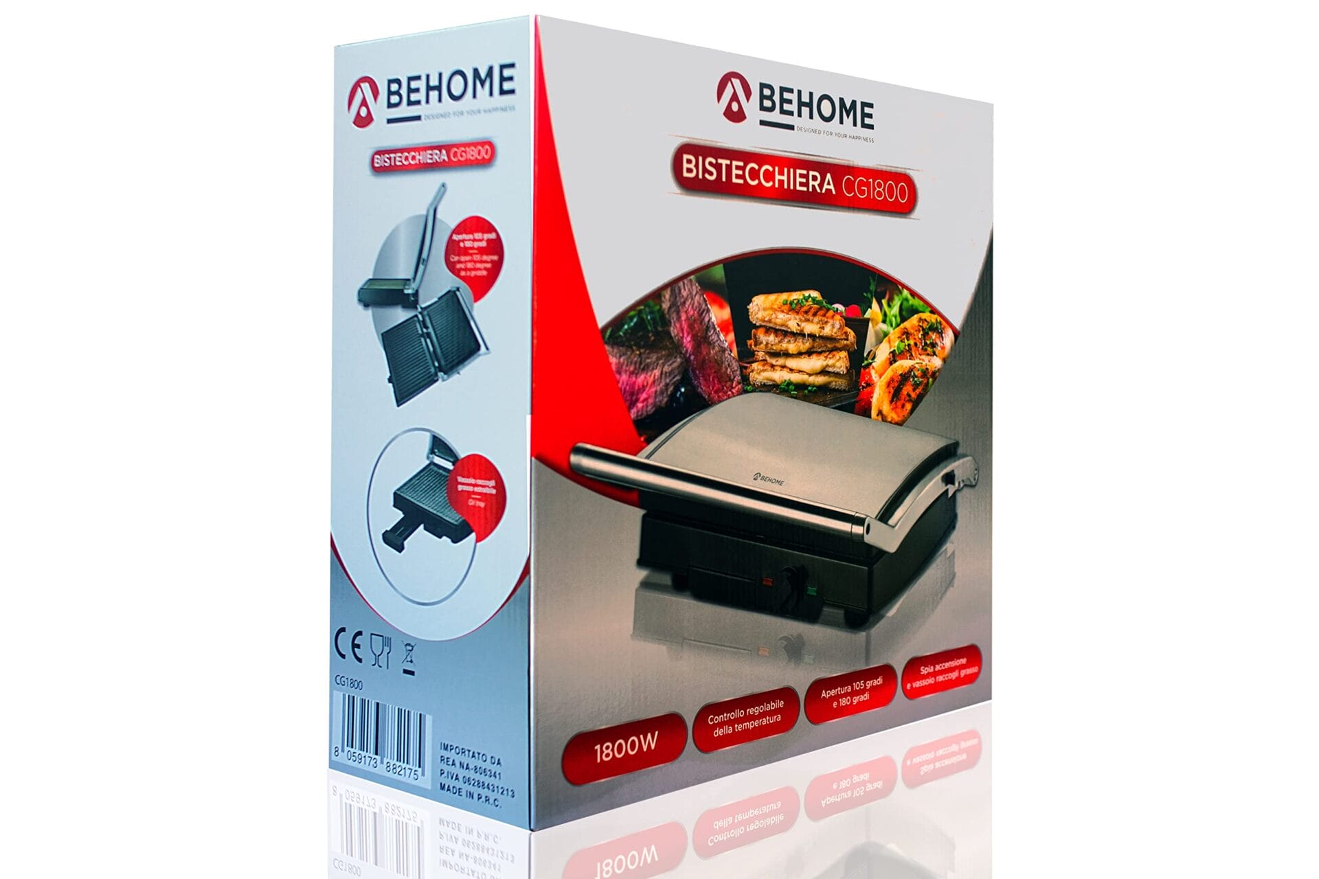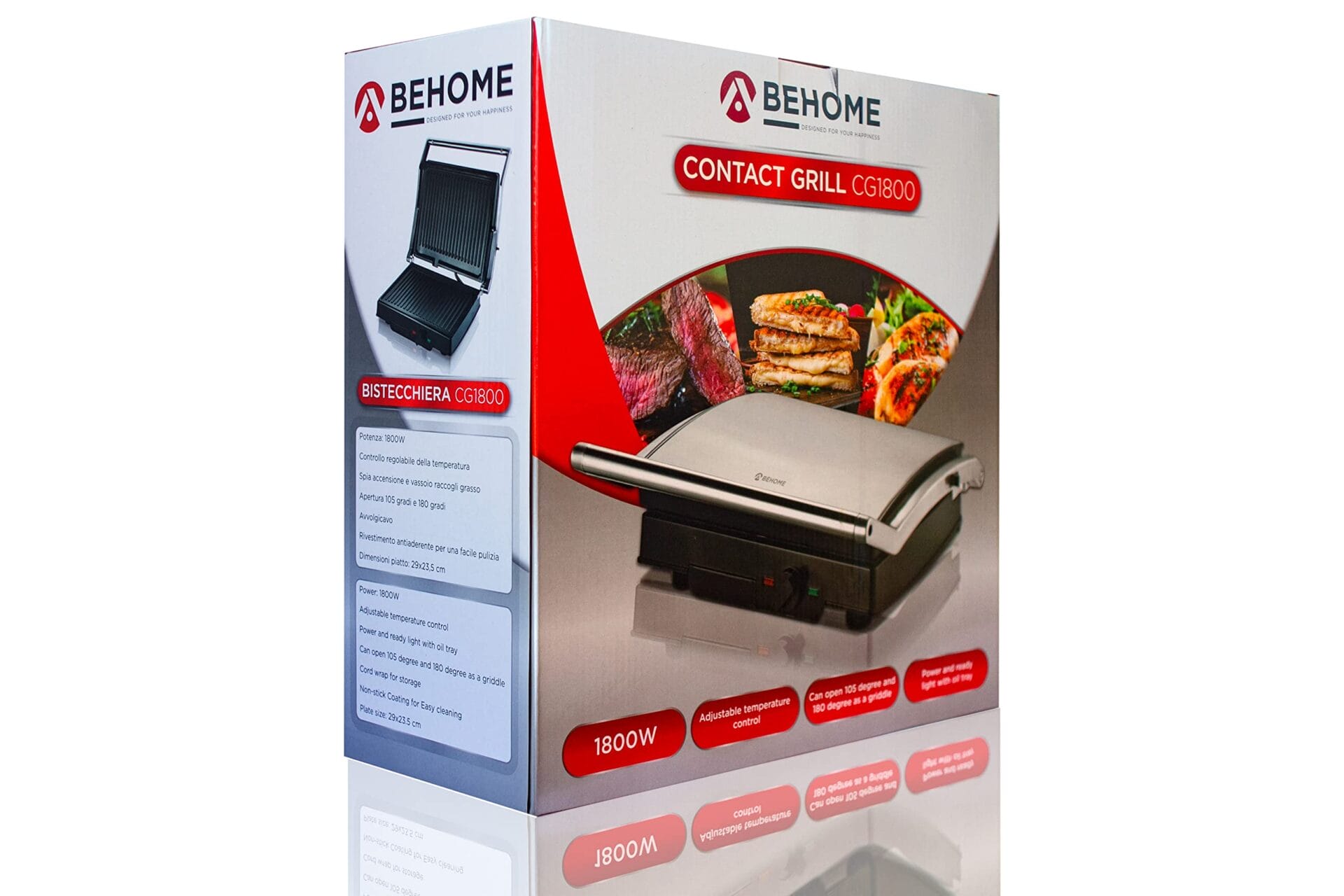 Grill BEHOME został zaprojektowany z myślą o wygodzie użytkowania. Posiada kabel z funkcją nawijania, co ułatwia przechowywanie urządzenia. Ponadto, otwarcie grillu wynoszące 105 i 180 stopni pozwala na większą elastyczność podczas grillowania większych kawałków mięsa lub warzyw.